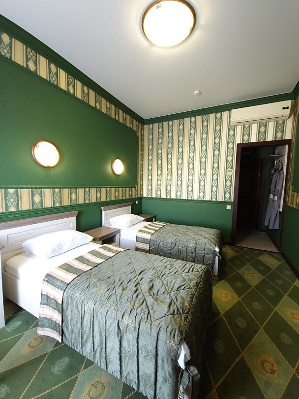 Стандартный номер с двумя односпальными кроватями , 20кв.м., с собственной ванной комнатой, косметическими принадлежностями, халатом, тапочками, доп.место невозможно, размещение только одного человека в номере. Размер кроватей 90х200