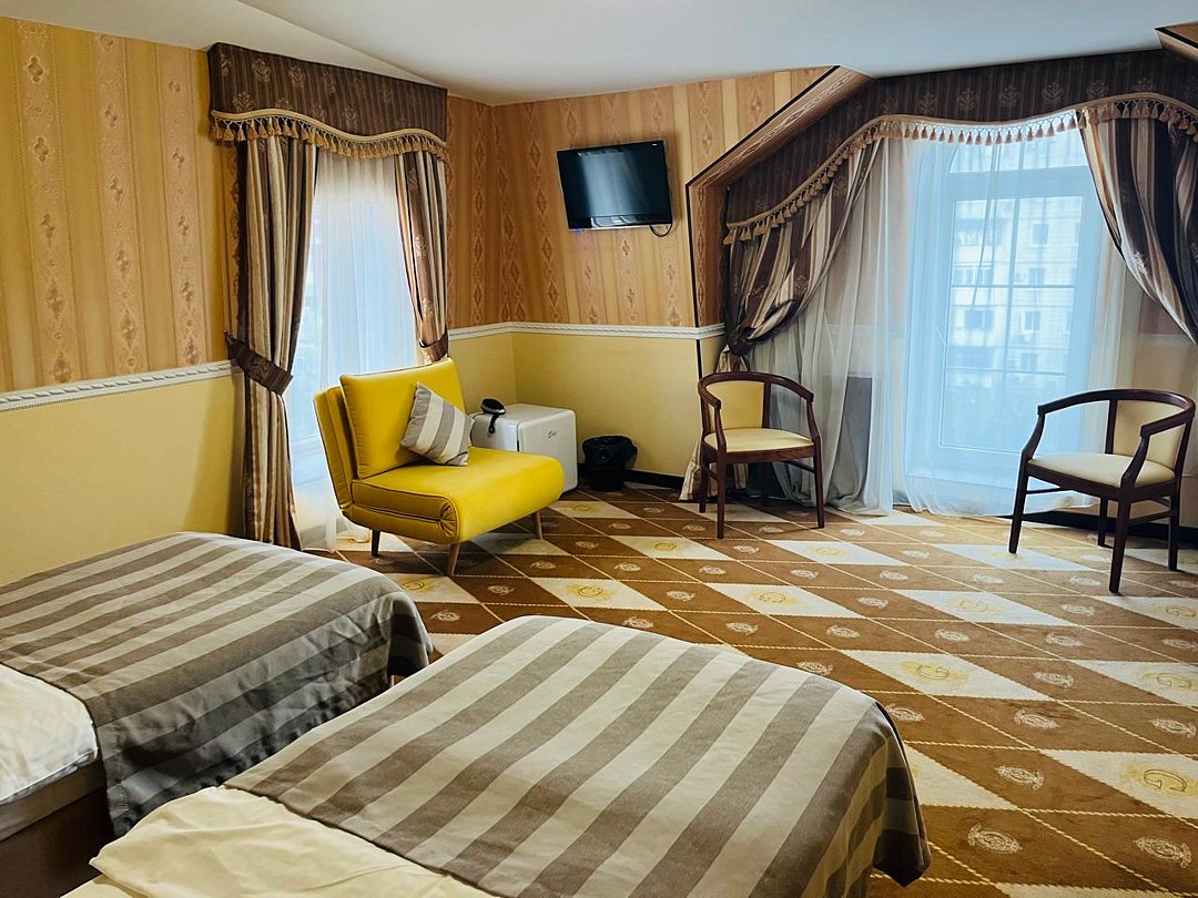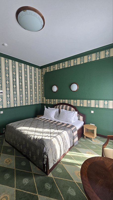 Стандартный двухместный номер, 20кв.м , с собственной ванной комнатой, косметическими принадлежностями, халатом, тапочками,с возможностью размещения доп.места, уточняйте у администратора.