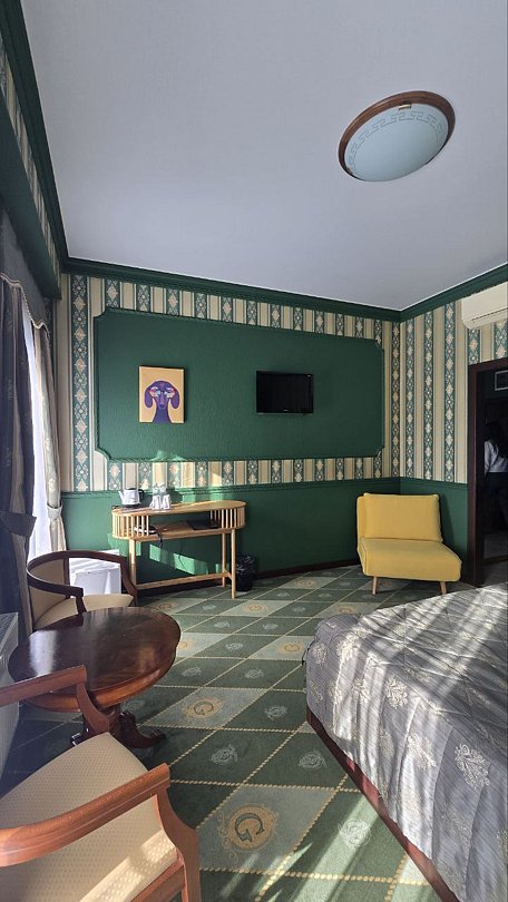 Фотографии и описание отеля в реальности соответствуют действительности. Обстановка выдержана в классическом стиле. Номер очень хороший, большой и светлый. Комфортные кровати с мягким матрасом и хорошим постельным бельём. Тепло и уютно.