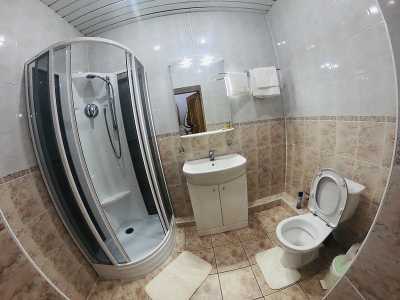 В номере есть все удобства: санузел (туалет, раковина, душ), по 3 полотенца на гостя, косметические одноразовые принадлежности, фен, кондиционер, ТВ, Wi-Fi, холодильник, электрический чайник, чай и кофе. Номер на первом этаже.