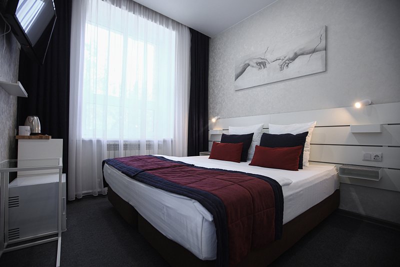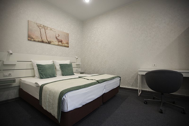 Одна двуспальная или две односпальные кровати. Номер на первом этаже без балкона. Компактный двухместный номер отлично подойдет для командировки или деловой поездки. Номер может быть оборудован по Вашему пожеланию одной двуспальной или двумя одноместными кроватями. Отчетные документы предоставляются.