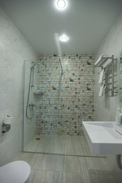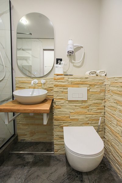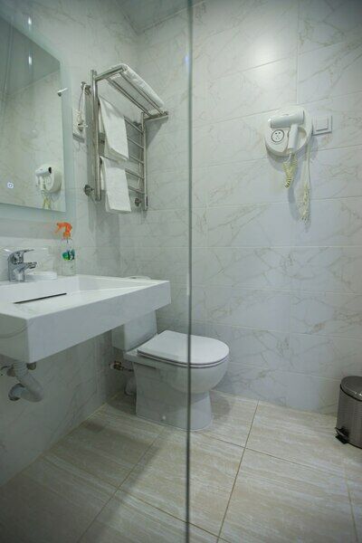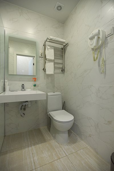 В номере есть все удобства: санузел (туалет, раковина, душ), по 3 полотенца на гостя, косметические одноразовые принадлежности, фен, кондиционер, ТВ, Wi-Fi, электрический чайник, чай и кофе. В номере есть минибар (оплачивается отдельно по прайсу).