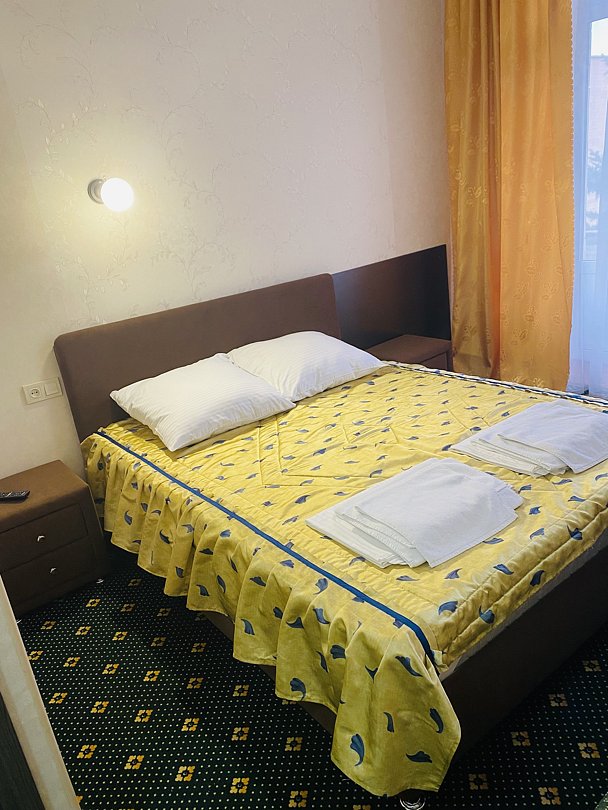 КОМФОРТ ПЛЮС, первая категория, двухместный. В номере: две комнаты (гостиная, спальня), диван, двуспальная кровать, спальные принадлежности, халат, телевизор, сплит-система, телефон, санузел, холодильник, чайник, чайные принадлежности, фен.