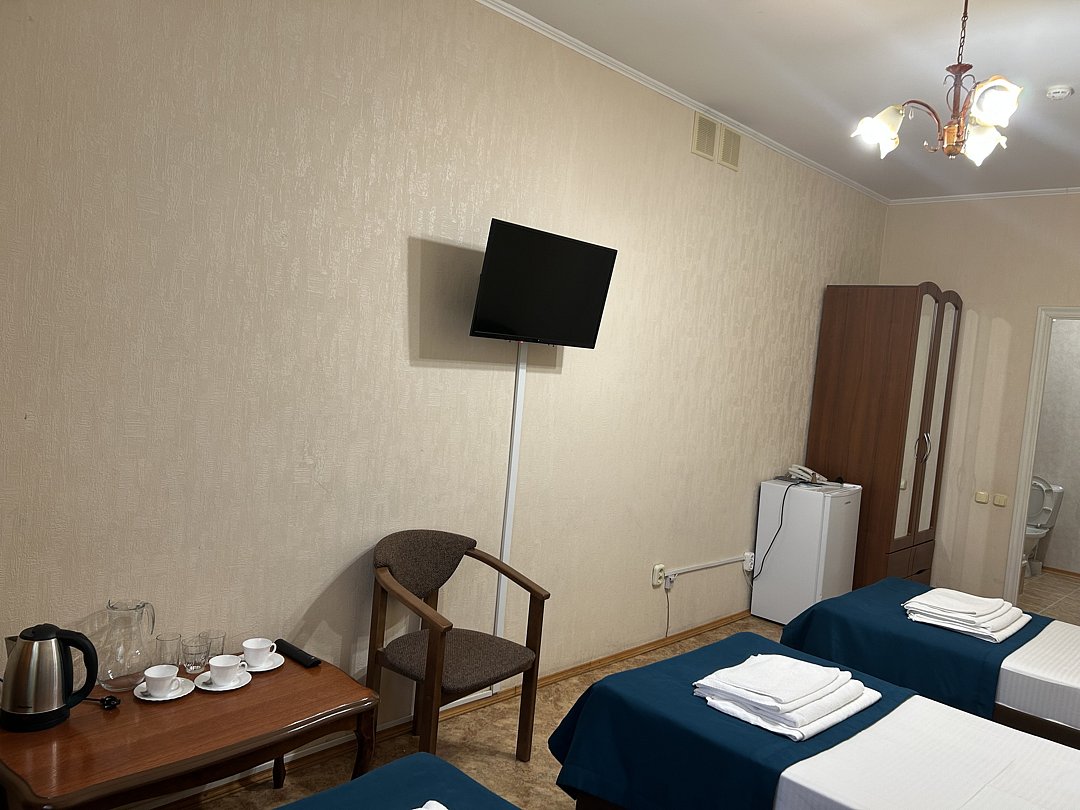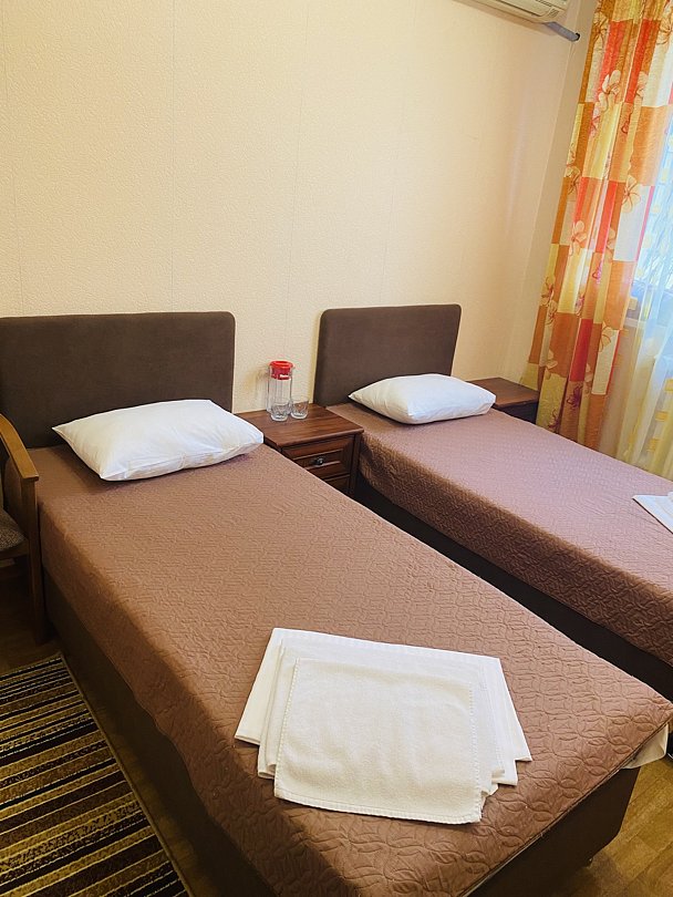 СТАНДАРТ ПЛЮС ДВУХМЕСТНЫЙ номер первой категории. В номере: две односпальные кровати, спальные принадлежности, телефон, телевизор, кондиционер, санузел, холодильник, чайник, чайные принадлежности, фен.