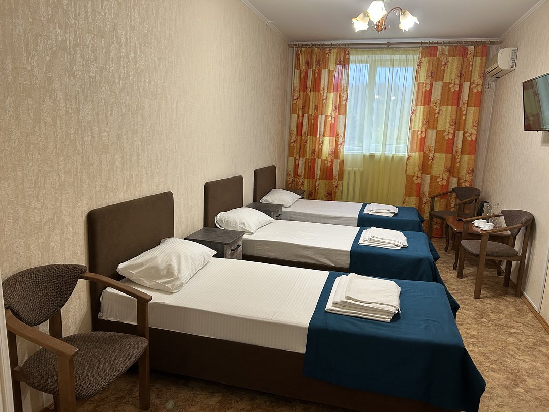 СТАНДАРТ ПЛЮС ТРЕХМЕСТНЫЙ первая категория. В номере: три односпальные кровати, спальные принадлежности, телефон, телевизор, сплит-система, санузел, холодильник, чайник, чайные принадлежности, фен.