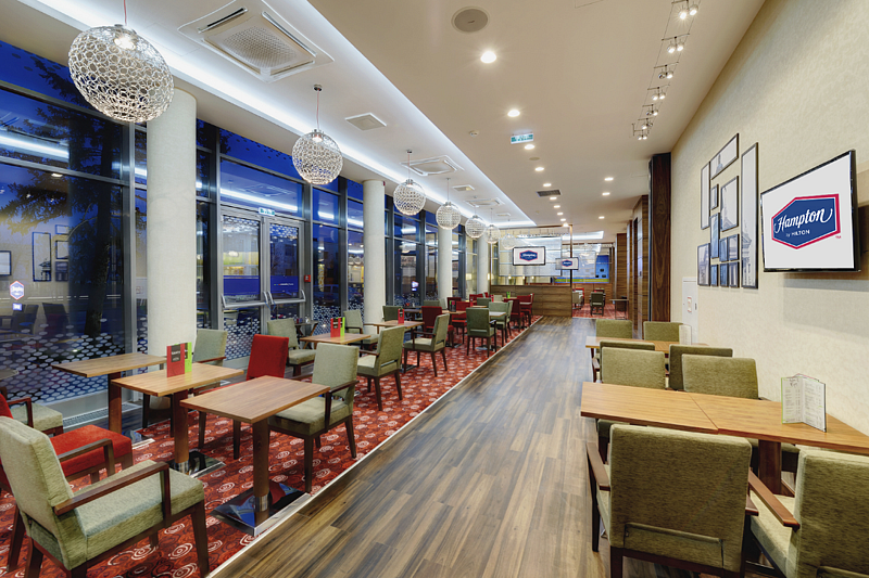 День начинается с горячего завтрака (завтрак включен в стоимость номера) со свежей выпечкой. Зал для завтрака находится в Lobby&Lounge bar отеля Хэмптон бай Хилтон. Завтрак подается в будние дни с 07:00 до 10:00 и в выходные с 07:00 до11:00.
