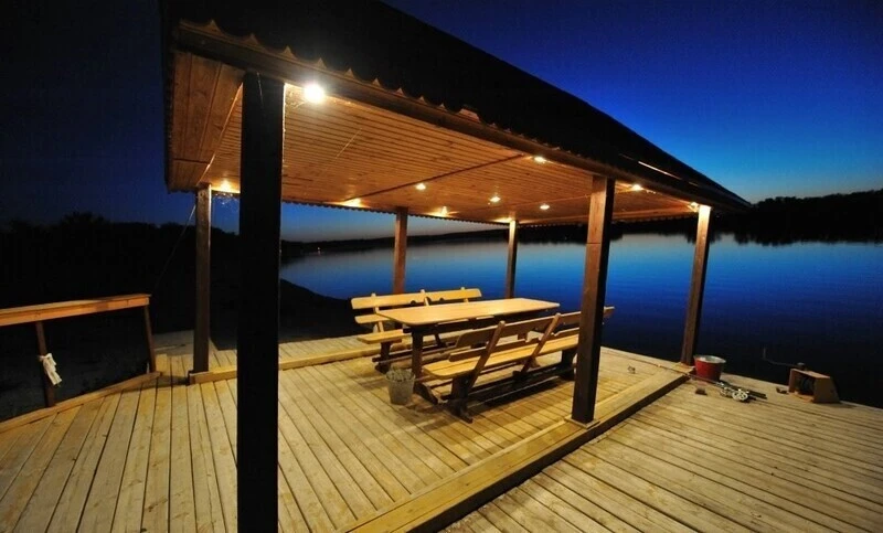 Прямо у воды, на плавучем понтоне, оборудована одна из крытых беседок, где всегда можно собраться дружной компанией.