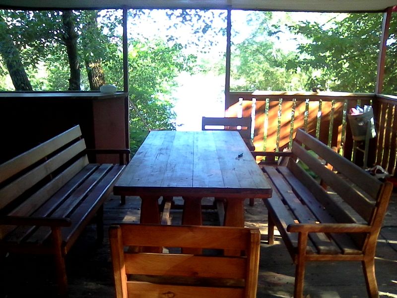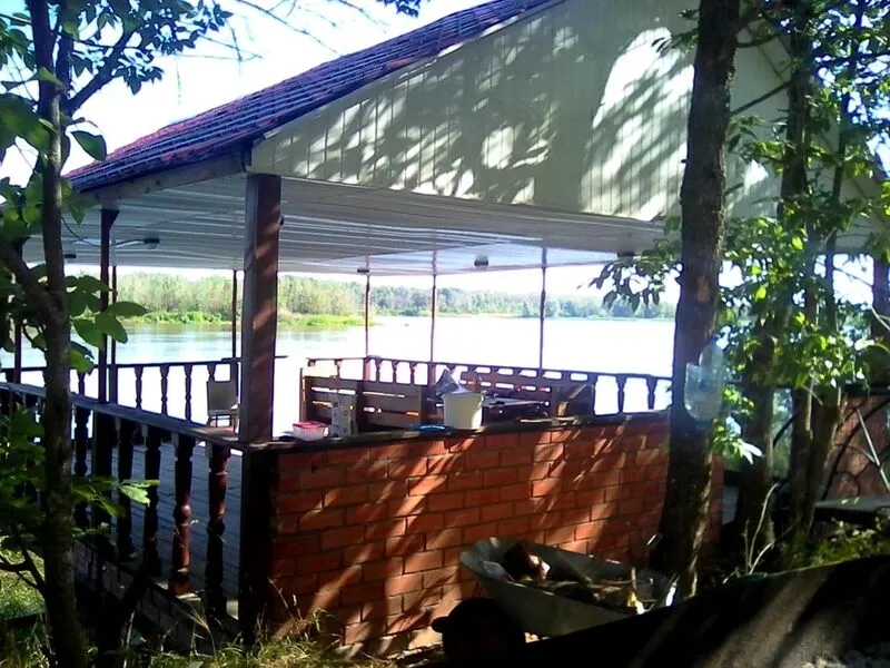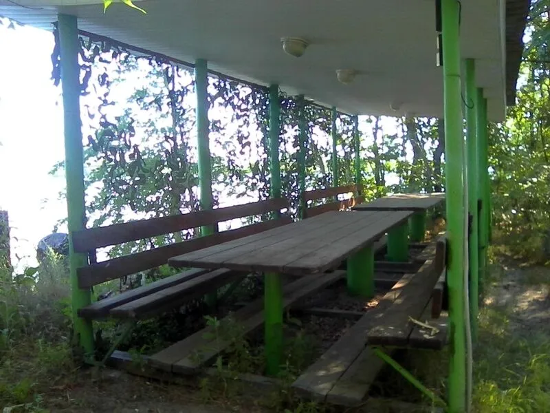 Вместительные веранды на берегу реки расположены по всей территории базы отдыха. Удобный отдых, красивый пейзаж. Аренда — 1000 руб.