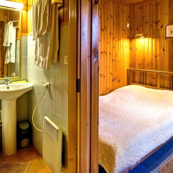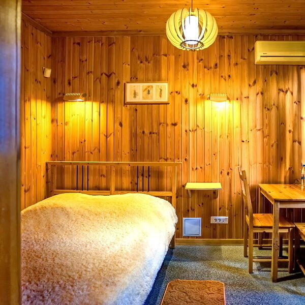 Уютные деревянные домики, оборудованы всем необходимым для комфортного отдыха. В доме: спальня, (двуспальная кровать размером 200х160 см), ванная комната с душевой кабиной, телевизор, холодильник, сплит- система, шкаф для одежды. Гостям предоставляются тапочки, наборы полотенец и гигиенических средств, эл. чайник по запросу.