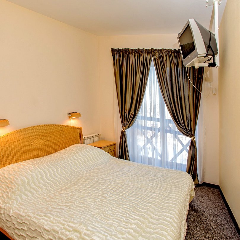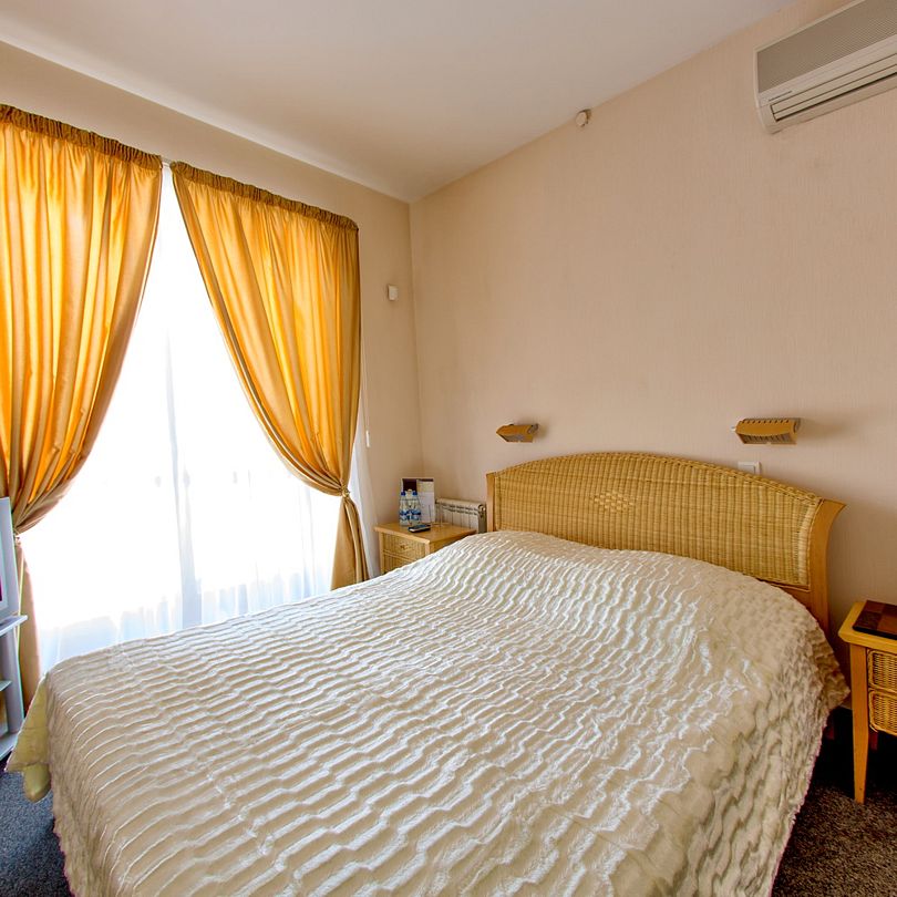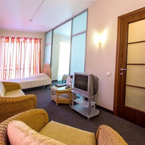 Двухкомнатный двухместный номер, расположен на 3 этаже нашего гостиничного комплекса с прекрасным видом из окна. Номер оснащен двуспальной кроватью размером 200х180 см, прикроватными тумбочками, диваном, журнальным столиком. В номере 2 телевизора, сплит-система, холодильник, два вместительных шкафа, обеденный стол, набор посуды. В ванной комнате: душевая кабина, биде. Гостям предоставляются тапочки, халат, фен, наборы полотенец и гигиенических средств. В номере бесплатный Wi-Fi.