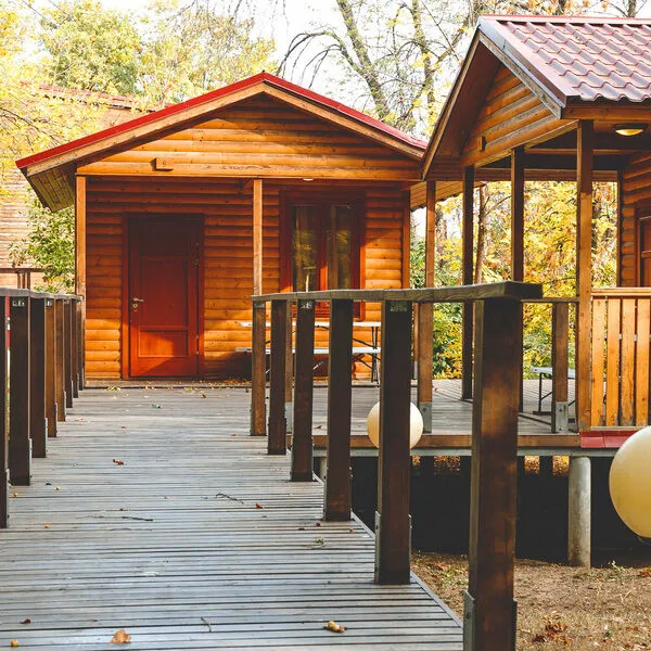Деревянные уютные домики с небольшой верандой и кухней, оборудованы всем необходимым для комфортного отдыха.