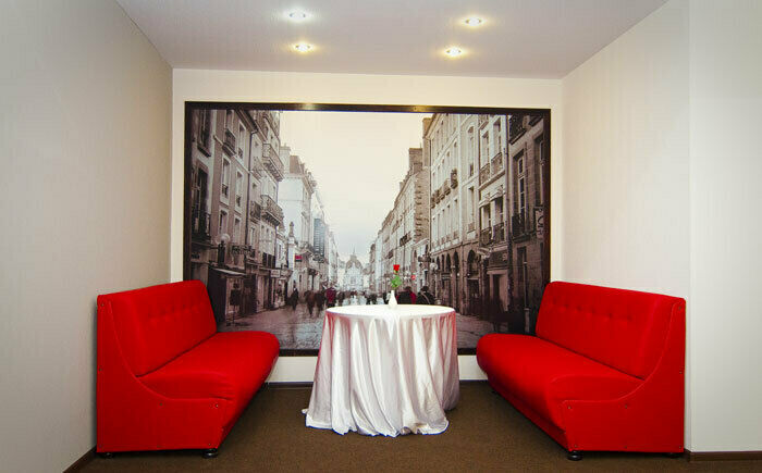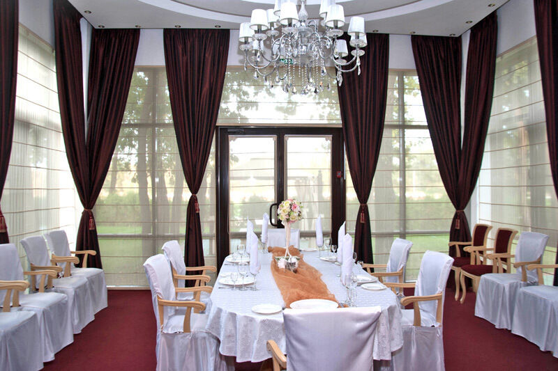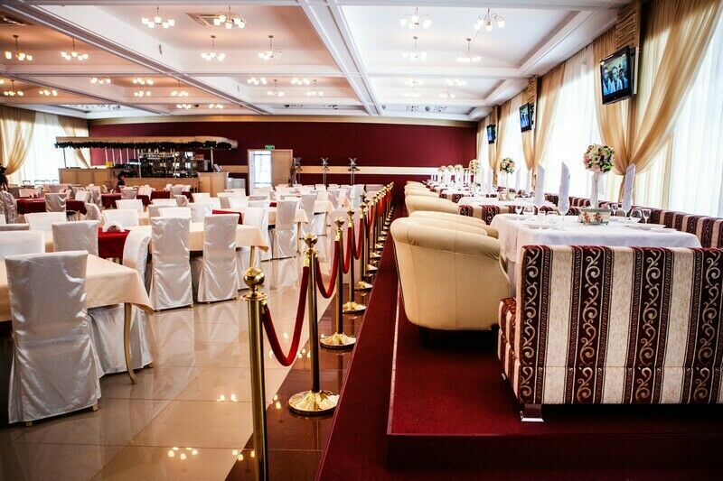 - Большой зал. Зал для пышных торжеств вместимостью 350 человек. Имеется сцена для проведения праздничной программы.