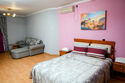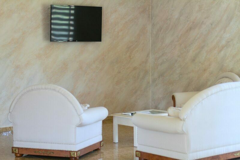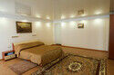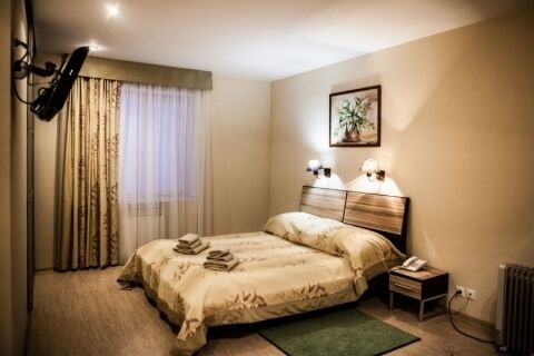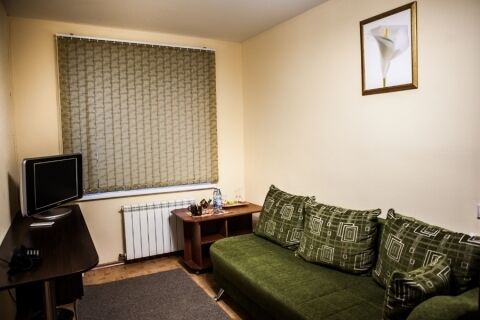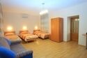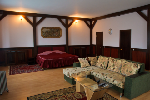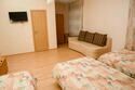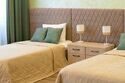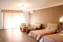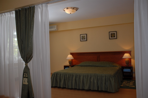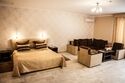 В номере: спальня с односпальными кроватями (можно сдвинуть), 2 тумбочки, 2 кресла, журнальный столик, телевизор, в гостиной шкаф и диван (можно использовать как дополнительное место). Номера оснащены мини-баром, холодильником,сплит-системой, санузлом с душем, феном.