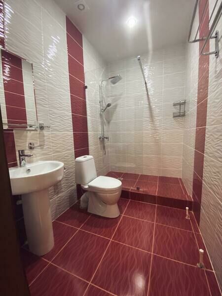 В номере холодильник, телевизор, сплит-система, платяной шкаф, санузел с душем.