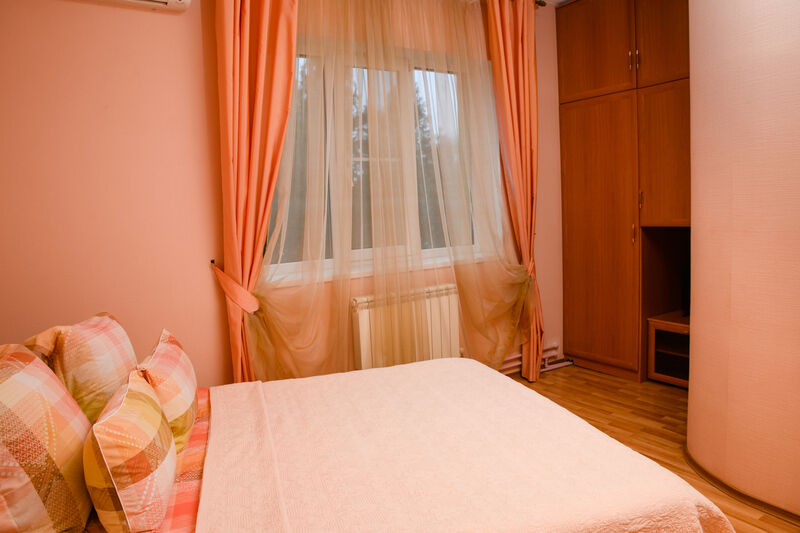 Комфортабельный VIP дом с сауной, бассейном и уютной гостиной с камином и бильярдом. В доме две спальные комнаты с двуспальными кроватями. В каждой из них есть телевизор, сплит-система, платяной шкаф. В просторной гостиной мягкая мебель, большой банкетный стол, телевизор, микроволновая печь, холодильник,телефон. Здесь же установлен бильярдный стол. Атмосферу загородного отдыха и уюта создает камин. 2 ванные комнаты оборудованы душем, имеется гостевой санузел. Рядом с домом расположена беседка c мангалом.