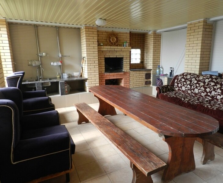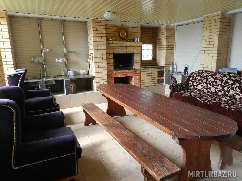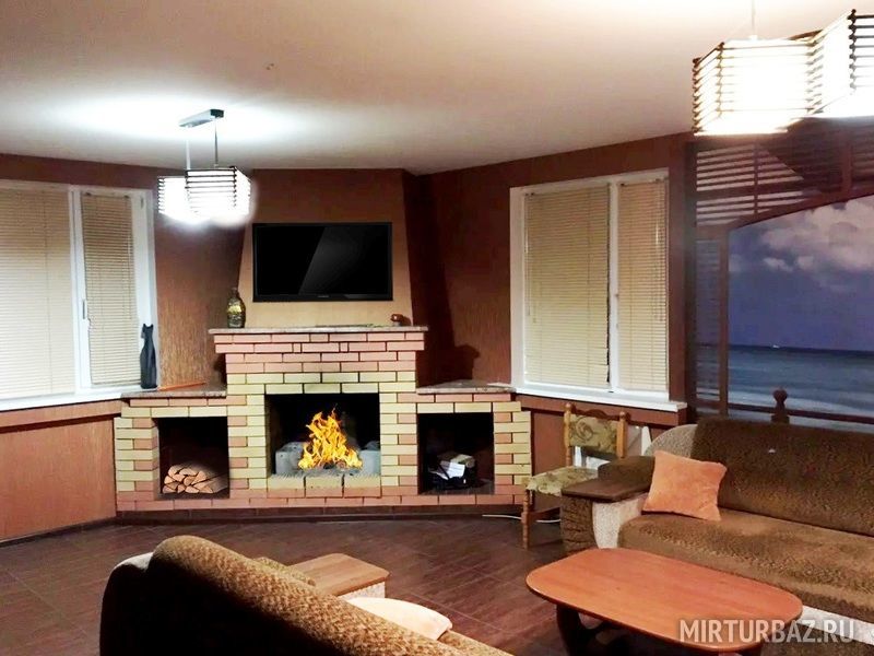 На территории дом в два этажа с евроремонтом, более 10 спальных мест, детская кроватка, игрушки, камин в доме и на открытой веранде, панорамные окна, парковка на 6 автомобилей, собственный пляж, ТV, интернет, игровая площадка и прочее.