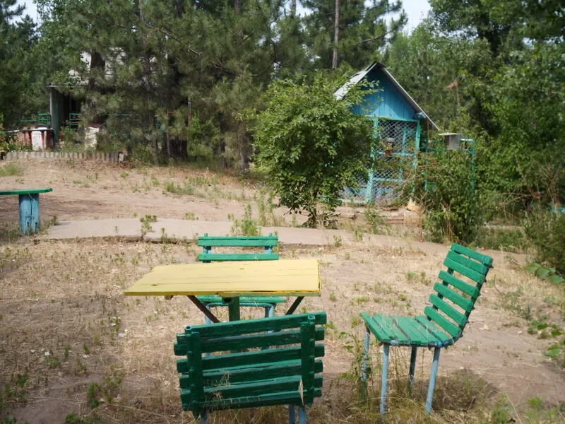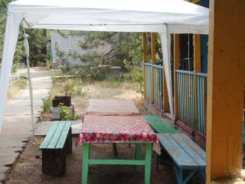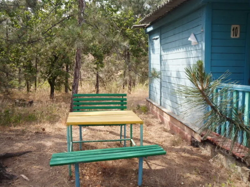 В доме 4 кровати, тумбочка, стол, стулья, шкаф для одежды, холодильник на веранде. У 12 и 13 домиков общий стол с лавочками.