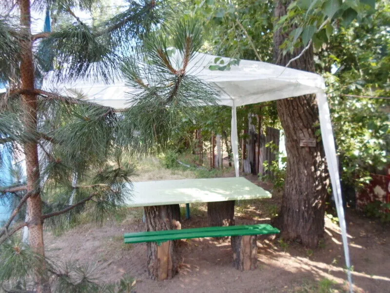В доме 4 кровати, диван, тумбочка, зеркало, кондиционер. На закрытой веранде холодильник. К домику большая беседка, в которой проведен свет (два стола и лавочки).