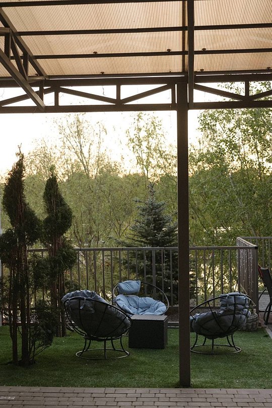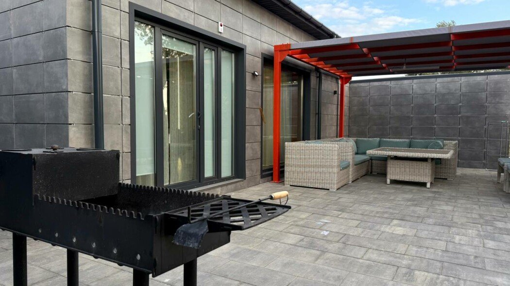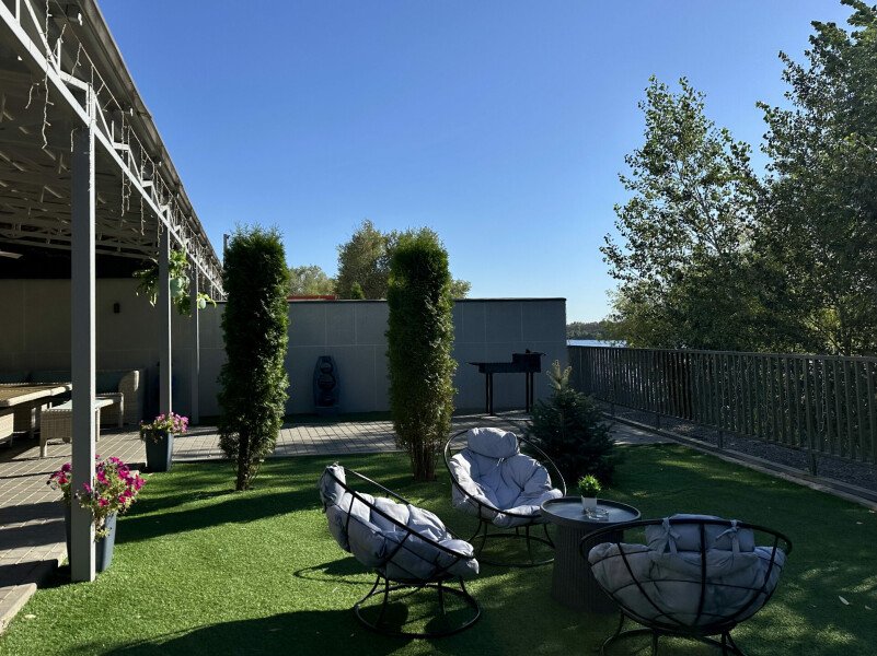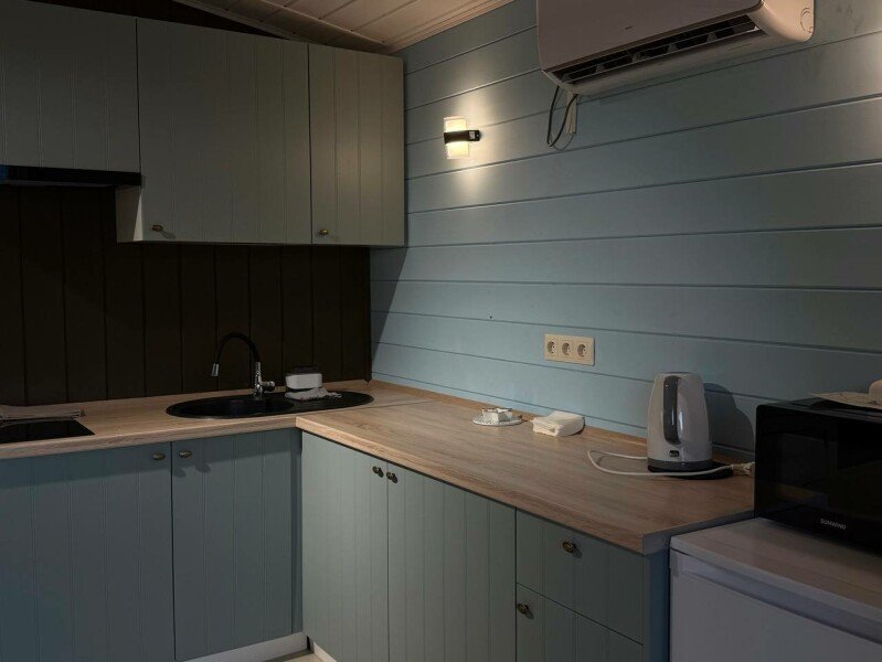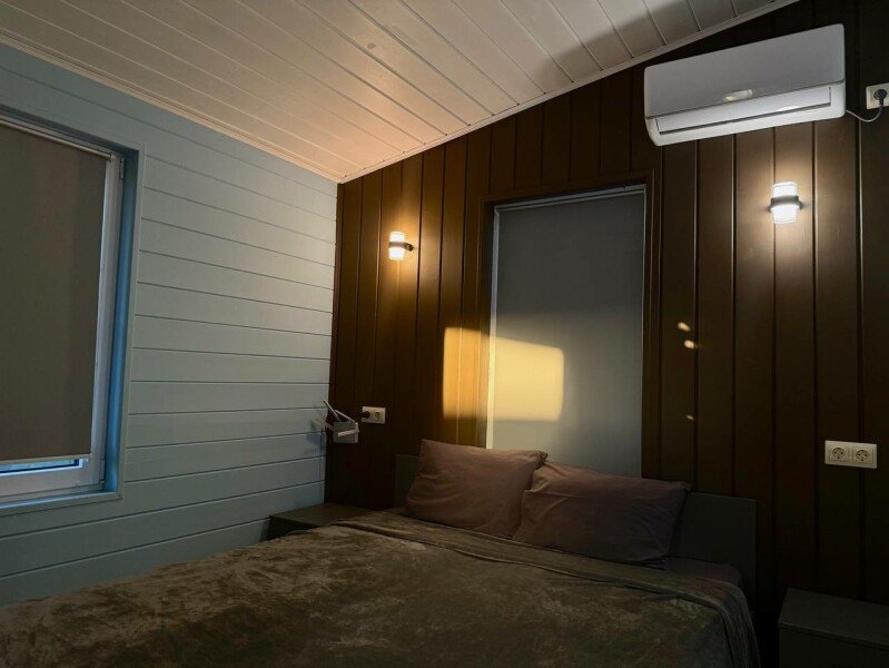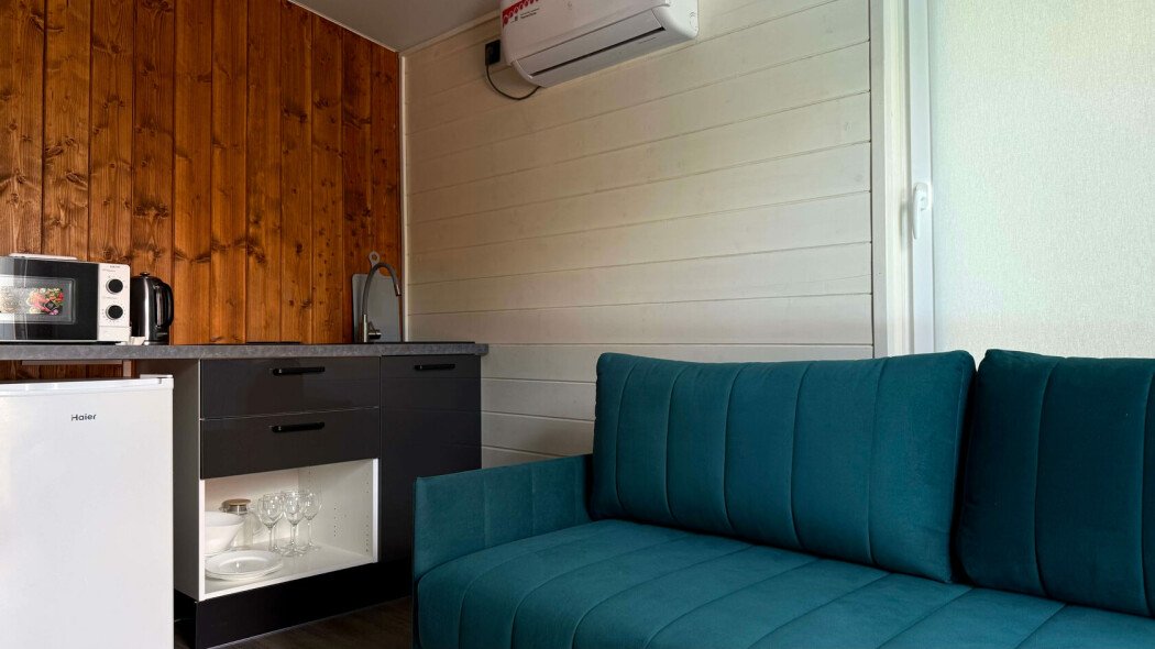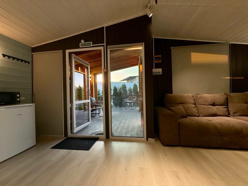 Каждый дом создан для вашего комфорта: светлая спальня наполнена теплой атмосферой, а просторная кухня-гостиная с раскладным диваном становится идеальным местом для душевного общения. Вы найдете всё необходимое для приготовления домашних блюд — от чайника и холодильника до микроволновой печи и плиты. На просторной террасе с уличной мебелью и собственной мангальной зоной вы сможете наслаждаться неспешными вечерами под умиротворяющий шепот реки.