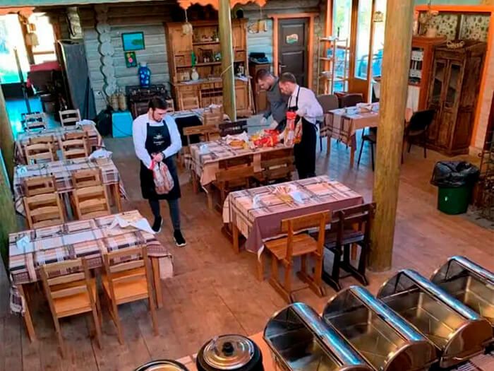 Таверна "Три пескаря" накормит гостей турбазы традиционными вкуснейшими блюдами русской кухни из местных продуктов, в хорошую погоду можно приготовить на открытом воздухе барбекю — для этого имеются специально обустроенные беседки. На радость самым маленьким гостям на территории расположен мини-зоопарк с домашними и экзотическими животными. Гостям предлагают совершить конные прогулки, поохотиться, половить рыбу, и просто отдохнуть в тишине леса.