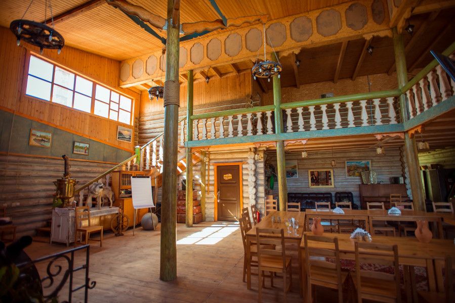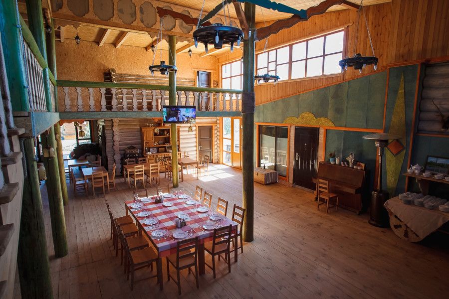 Двери турбазы открыты для отдыхающих круглый год. Одновременно здесь может разместиться до 100 гостей. Комплекс предоставляет все для комфортного и увлекательного отдыха: размещение в комфортных срубах с индивидуальным дизайном, кинотеатр и русская баня, детская игровая площадка, ресторан и библиотека. Каждый домик оснащен телевизором, набором для приготовления ароматного чая и крепкого кофе.