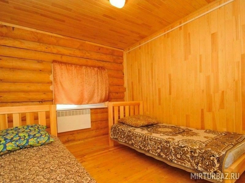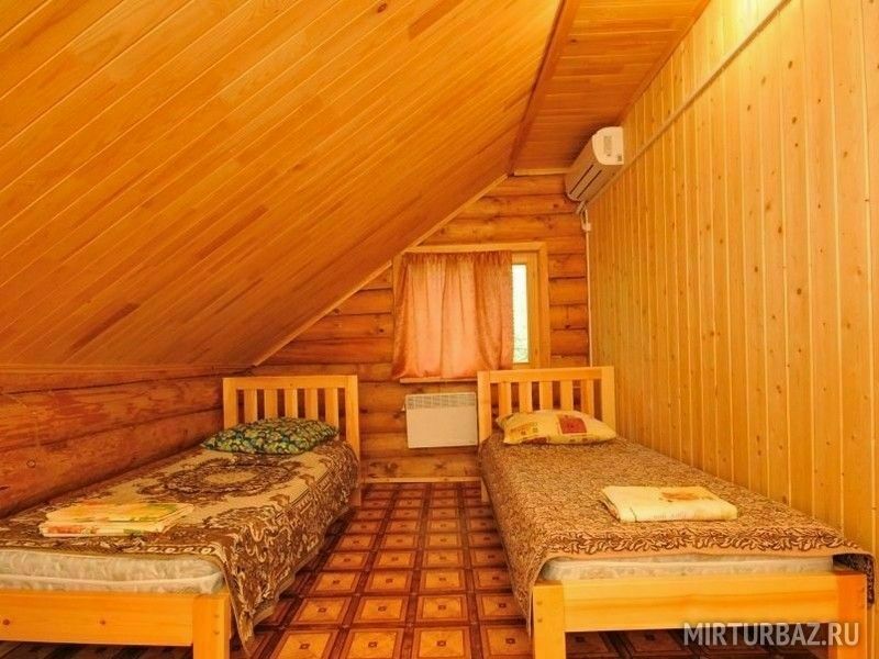 На 1 этаже — 2 человека. На 2 этаже — 2 человека. На нижнем и верхнем этажах дома расположены идентичные по оснащенности комнаты. В каждой из них: две полутораспальные кровати, стол, стулья, кухонная зона с холодильником, электрической плитой, электрическим чайником. На каждом этаже есть санузел, на первом — душевая кабина. Второй этаж оснащен кондиционером. На каждом этаже стоят радиаторы. Возле домика расположена площадка с мангалом. ВОДУ ПИТЬЕВУЮ И УГЛИ ПРИВОЗИТЬ С СОБОЙ.