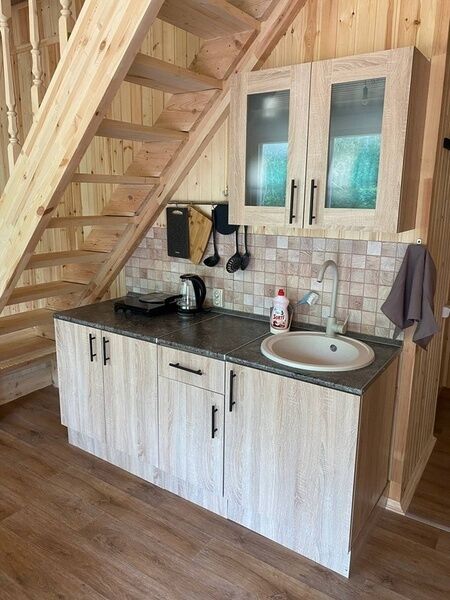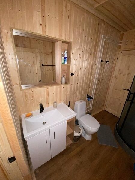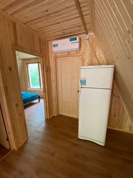 НедостаткиИз заявленных условий в комнатах домика, холодильник и кухня были только в одной комнате. Чайник был нерабочий и ужасно вонял горелым пластиком, пришлось выставить его на улицу. Сантехника в плачевном состоянии, вся ржавая, смесители не работают.