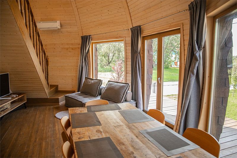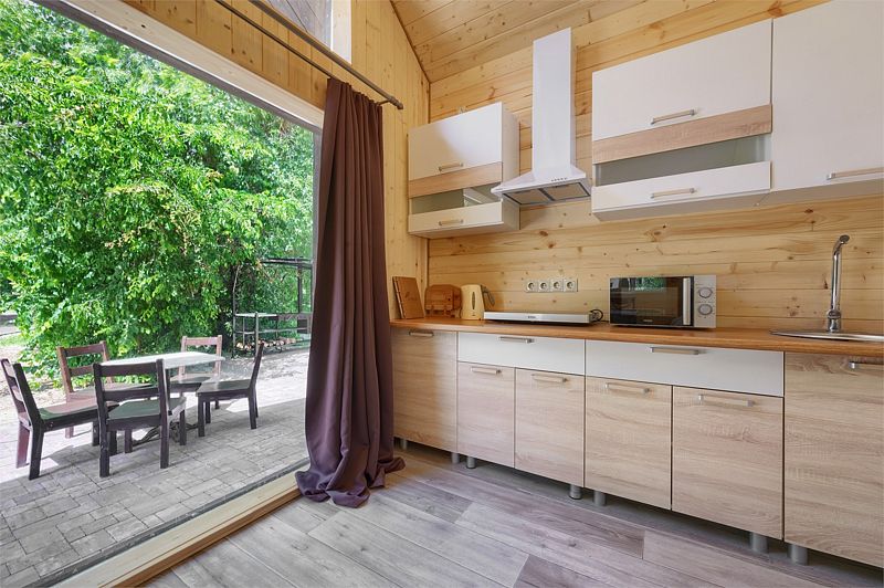 Дом позволит с комфортом разместиться как многодетной семье с 3-4 детьми, так и компании, путешествующей на нескольких машинах.