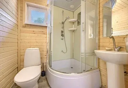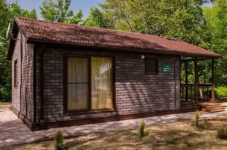 В домике имеется: телевизор, холодильник, сплит-система, электроплита, электрочайник, комплект посуды и комплект постельного белья. Душ, туалет.