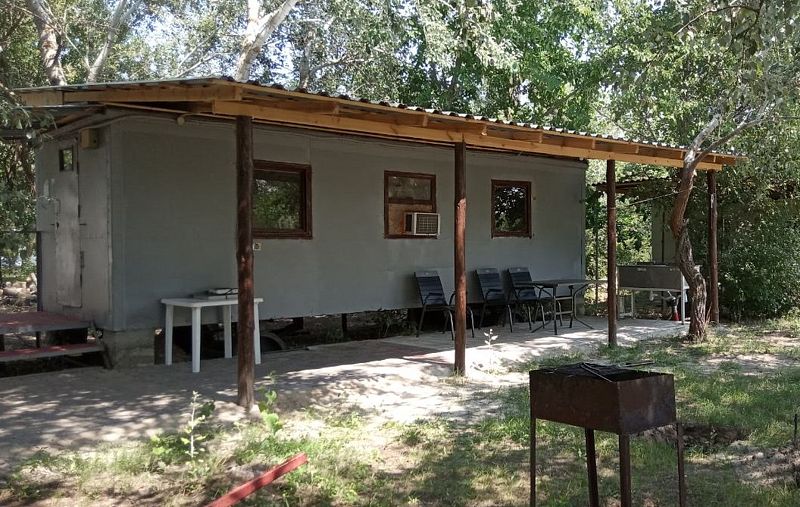 В домике имеется телевизор, холодильник, сплит-система, электроплита, электрочайник, комплект посуды и комплект постельного белья. Душ, туалет.