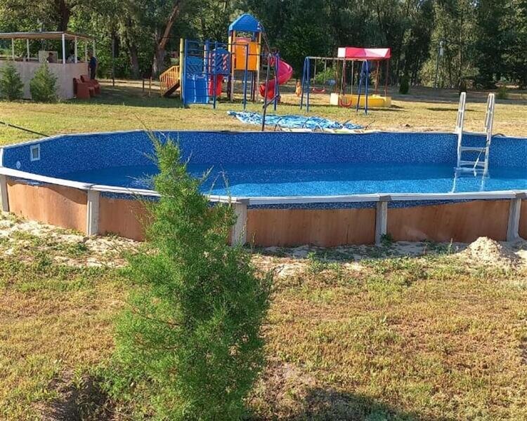 Для развлечений на свежем воздухе на территории базы установлен просторный плавательный бассейн. Рядом расположена детская площадка.