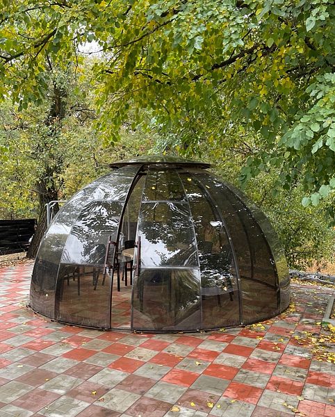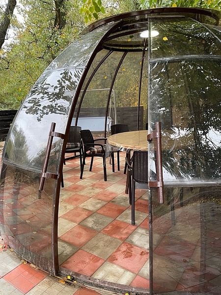 Уютные беседки-сферы «Купол» идеально подходят для встречи до 8 человек — они подготовлены для осенне-зимнего отдыха, обеспечивая комфорт даже в холодную погоду. Каждая беседка оснащена всем необходимым: электричеством, освещением, розетками для зарядки устройств и возможностью подключить музыкальную систему.