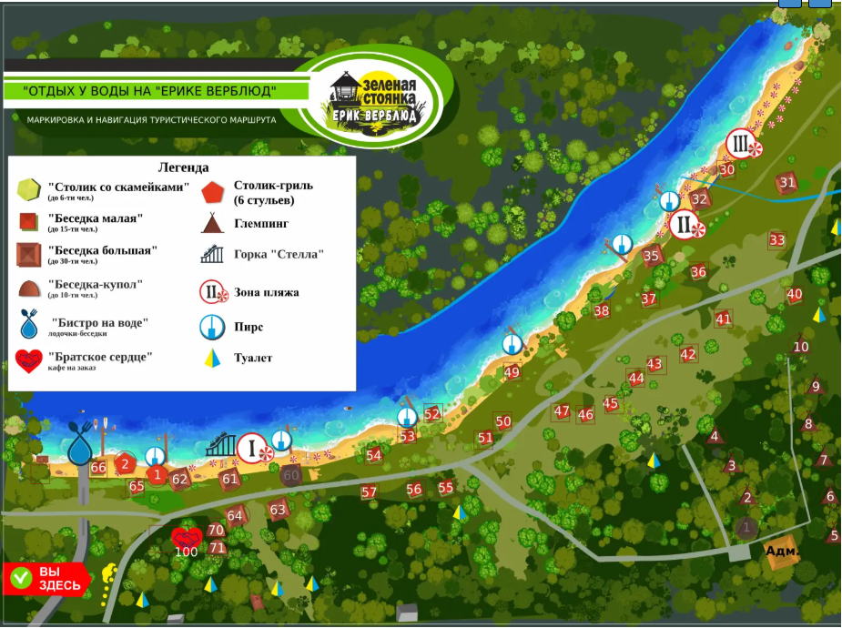 На территории Зеленой стоянки «Ерик Верблюд» прилегающей к «Пансиону в Дубраве» реализованы пять туристических маршрутов.