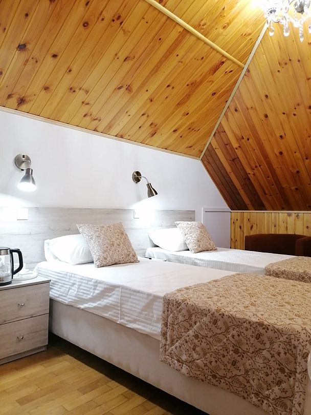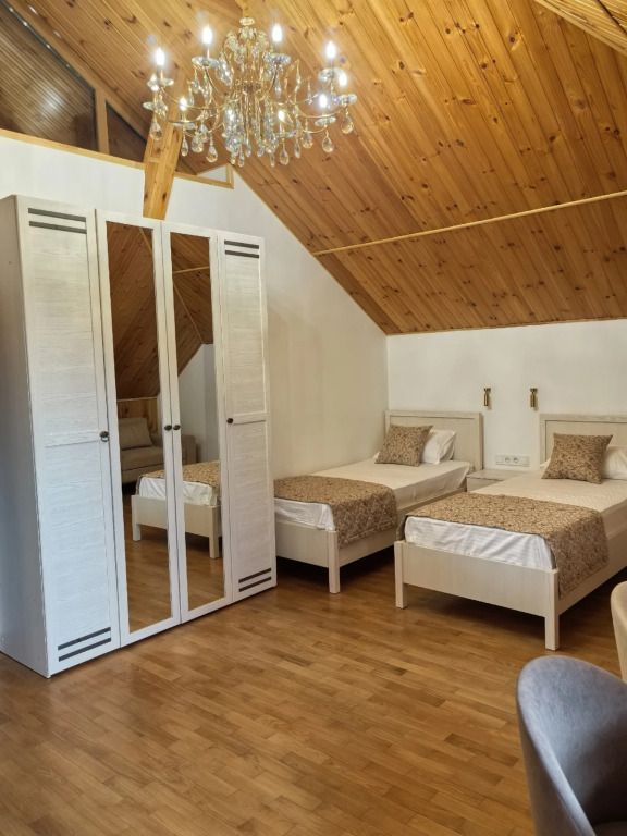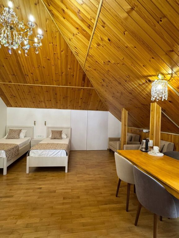 Четырёхместный семейный номер с тремя кроватями мансарда