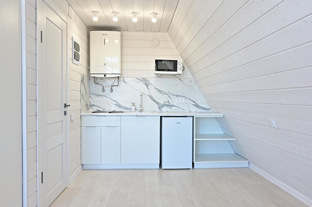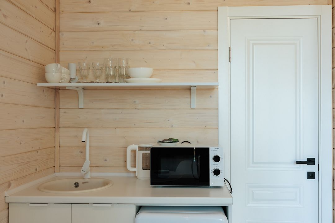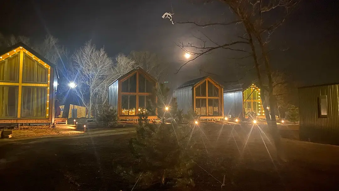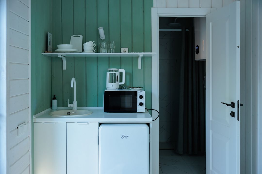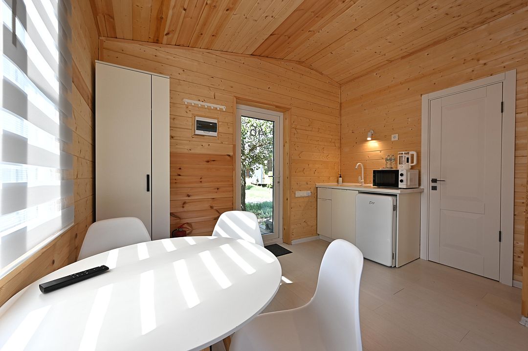 НедостаткиТонкие стены в домике, совместные с другими постояльцами, отсутствие холодильника