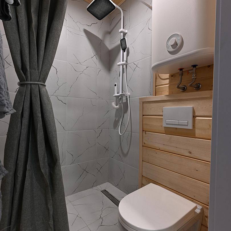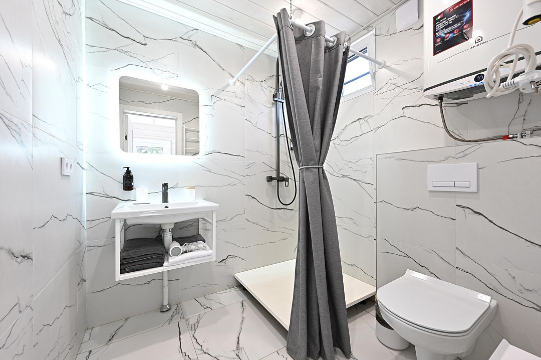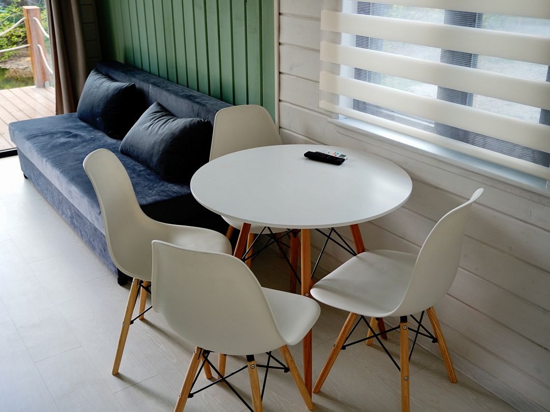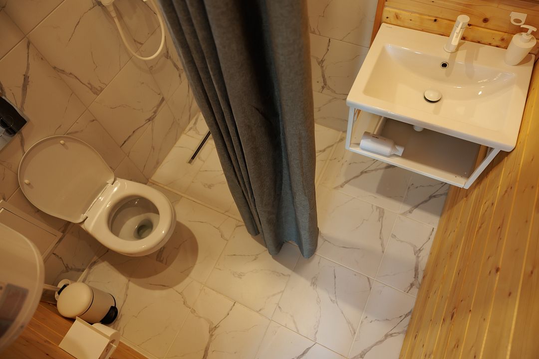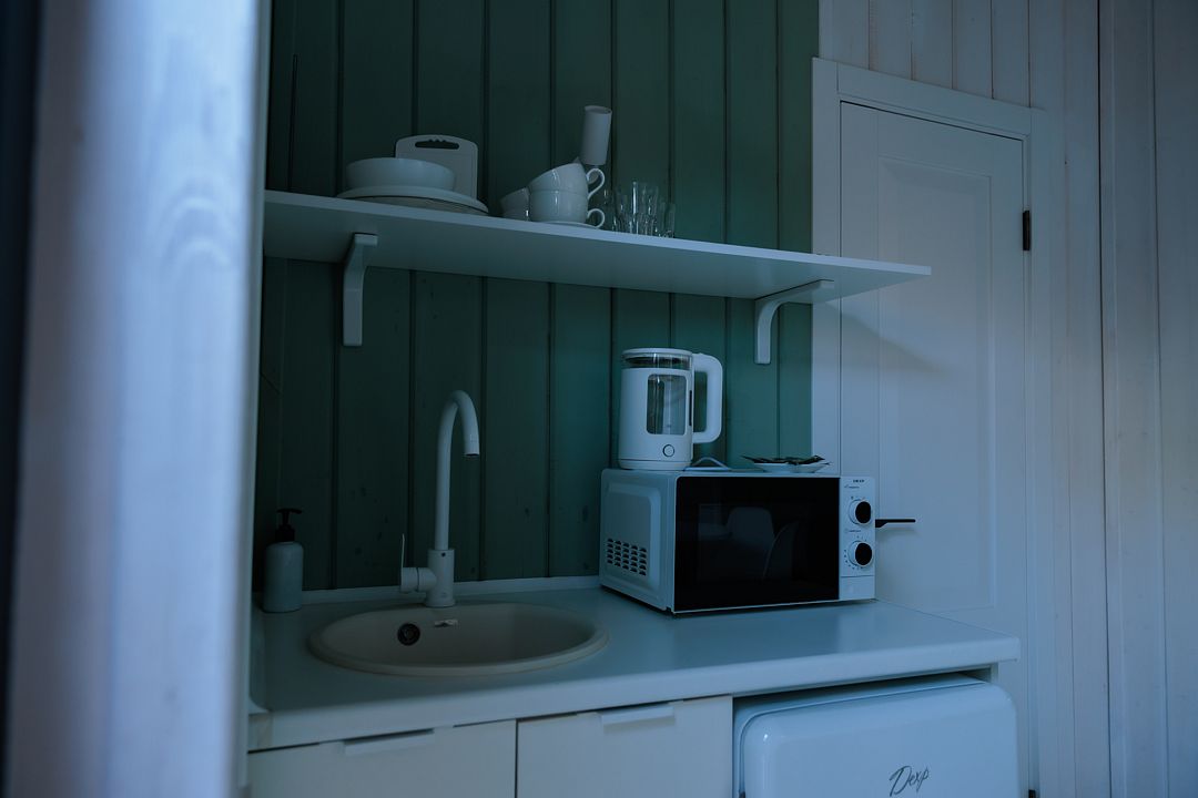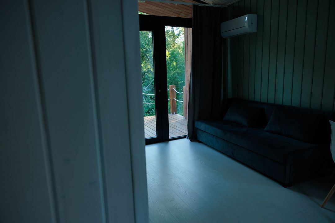 НедостаткиТонкие стены в домике, совместные с другими постояльцами, отсутствие холодильника