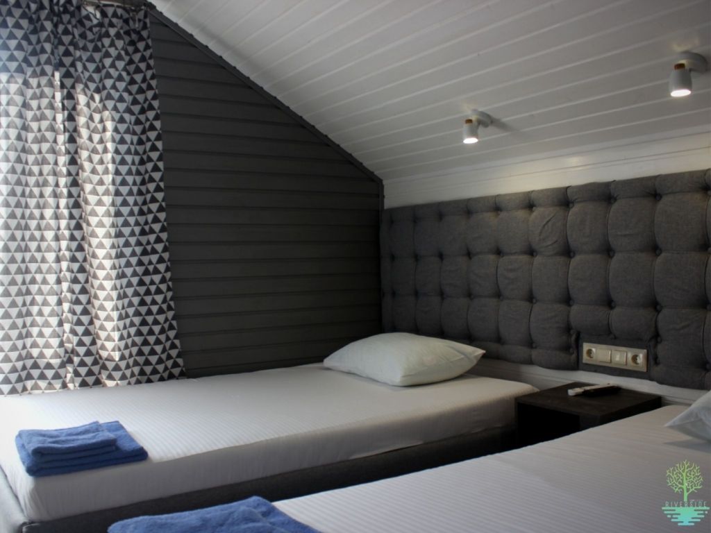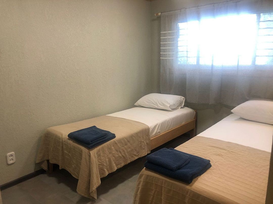 Две широкие односпальные кровати, а также спокойный дизайн номера помогут забыть о городском шуме и суете и полноценно отдохнуть.