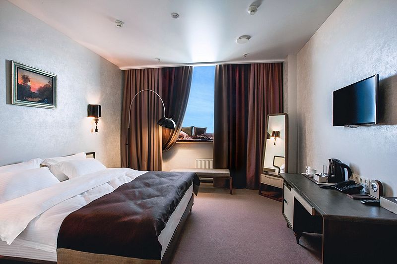 Удобное расположение отеля, в бизнес-центре. Виды из окон открываются умопомрачительные. Можно быстро добраться до основной достопримечательности города — Родина Мать. Разнообразные завтраки, можно заказать в номер.