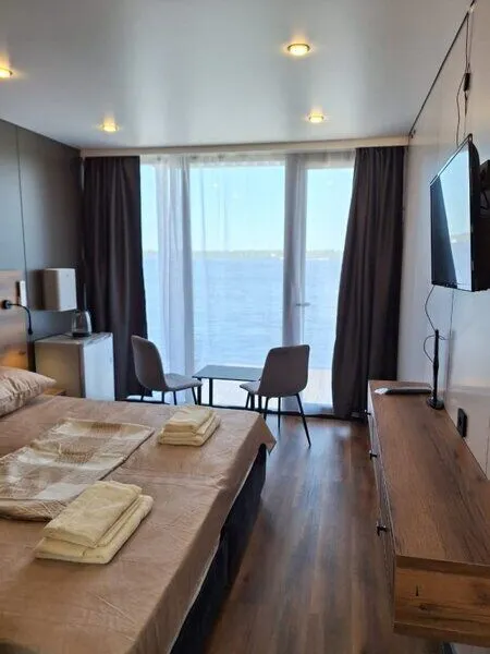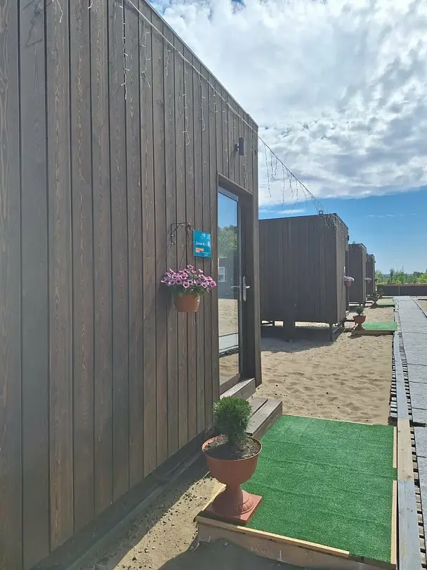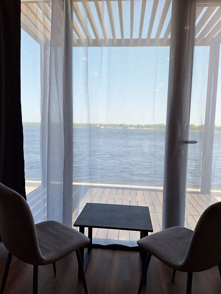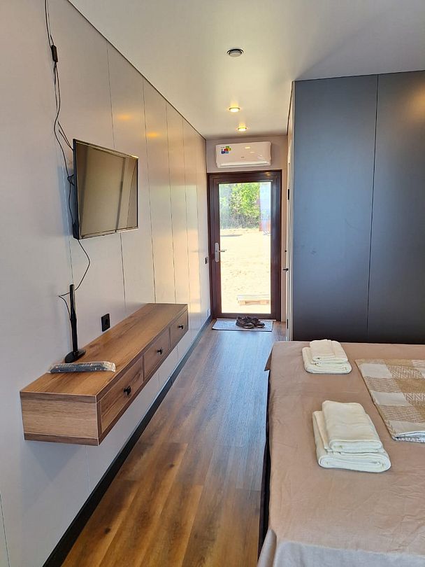 Новые и современные модульные коттеджи оснащены удобной мебелью, телевизором, собственным санузлом, гардеробом, электронными замками и панорамными окнами, из которых открывается вид на речную гладь. Дома также устойчивы как к высоким, так и низким температурам; оснащены водоснабжением, теплоснабжением и водоотведением.