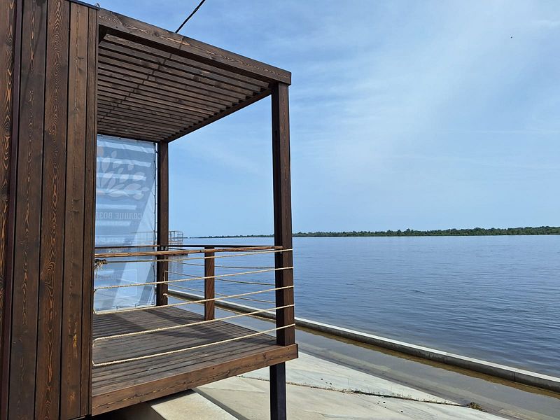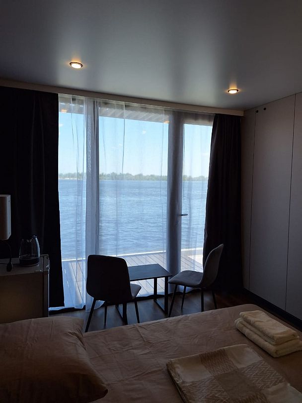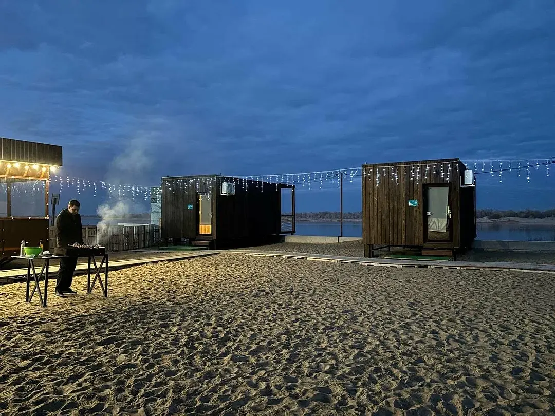 Семейный отдыхДостоинстваОтличные чистые удобные домики. Кондиционер. Балкон выходит на Волгу. До реки метров 10. Очень понравилось. Я спокойно могла на балкончике пить кофе и наблюдать за ребенком на рыбалке не волнуясь...