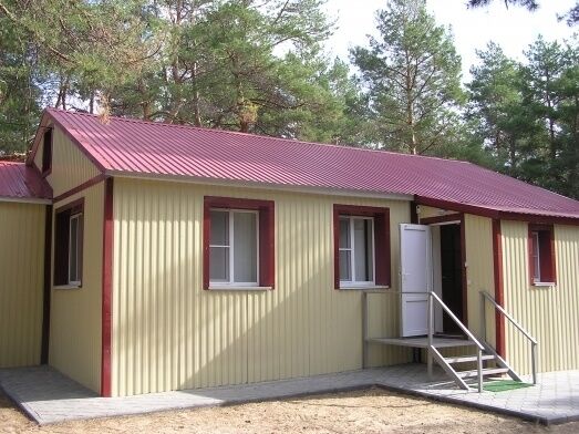 Для проживающих в домиках без удобств на территории турбазы предусмотрены душевые и три санузла, расположенные в отдельном едином блоке.