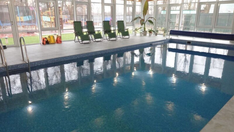 Тип бассейна: крытый бассейнГости турбазы «Тихий Хуторок» могут посетить крытый бассейн, расположенный в банном комплексе. При аренде бани вы автоматически получаете возможность воспользоваться услугами бассейна без дополнительной платы. Таким образом, за одну стоимость вы сможете совместить два оздоровительных удовольствия — посещение парной и плавание в комфортных условиях крытого бассейна.