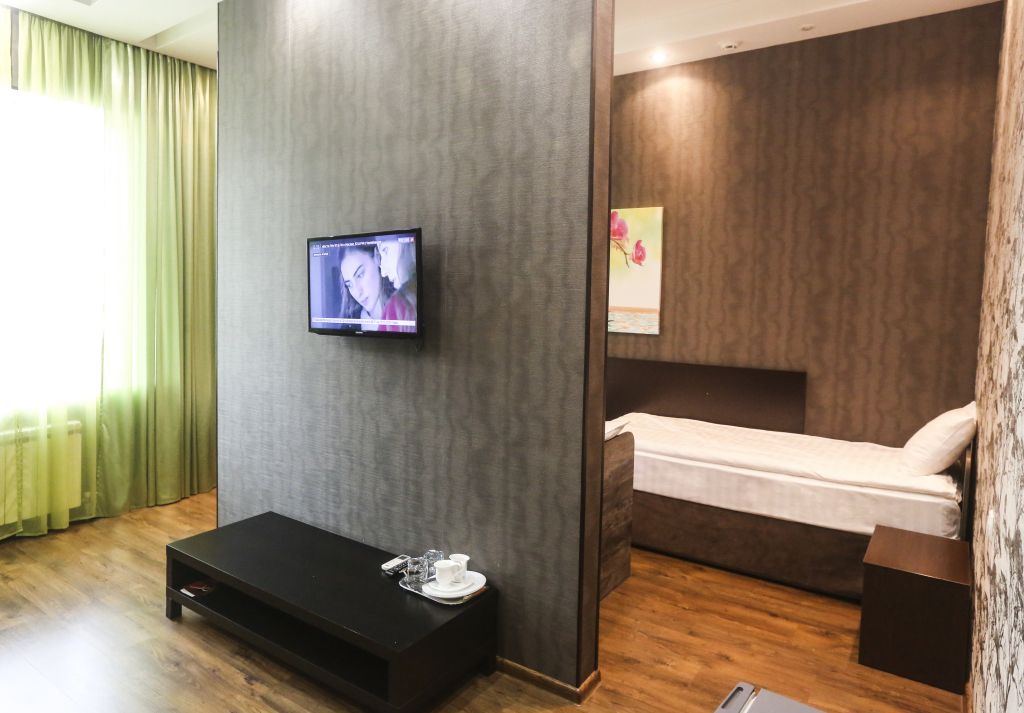 В номере вы найдёте телевизор. Оснащение зависит от выбранной категории номера.