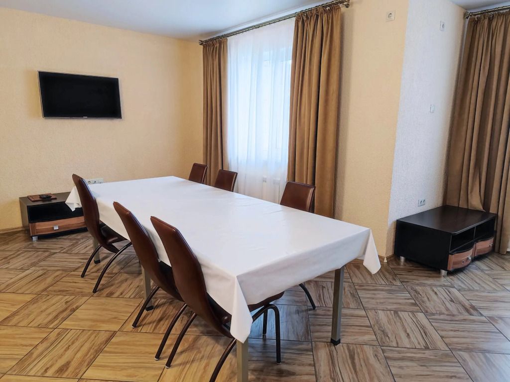 Читать полностьюКонференц-зал рассчитан на 40 мест со всем необходимым звуковым и проекционным оборудованием. Здесь созданы все условия для продуктивной работы. Современные полукресла достаточно удобны для работы, но совершенно не дают заснуть в силу отсутствия боковин. Недавно отделанное помещение с точки зрения дизайна совершенно нейтрально, детали интерьера не цепляют глаз. Надежная шумоизоляция отсекает уличные звуки. Никто и ничто не будет отвлекать внимания присутствующих от получения информации, обсуждения тем мероприятия, мозгового штурма или принятия важных решений.