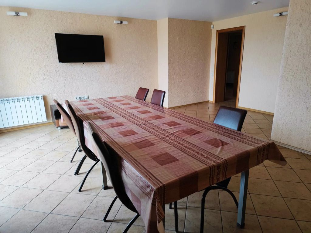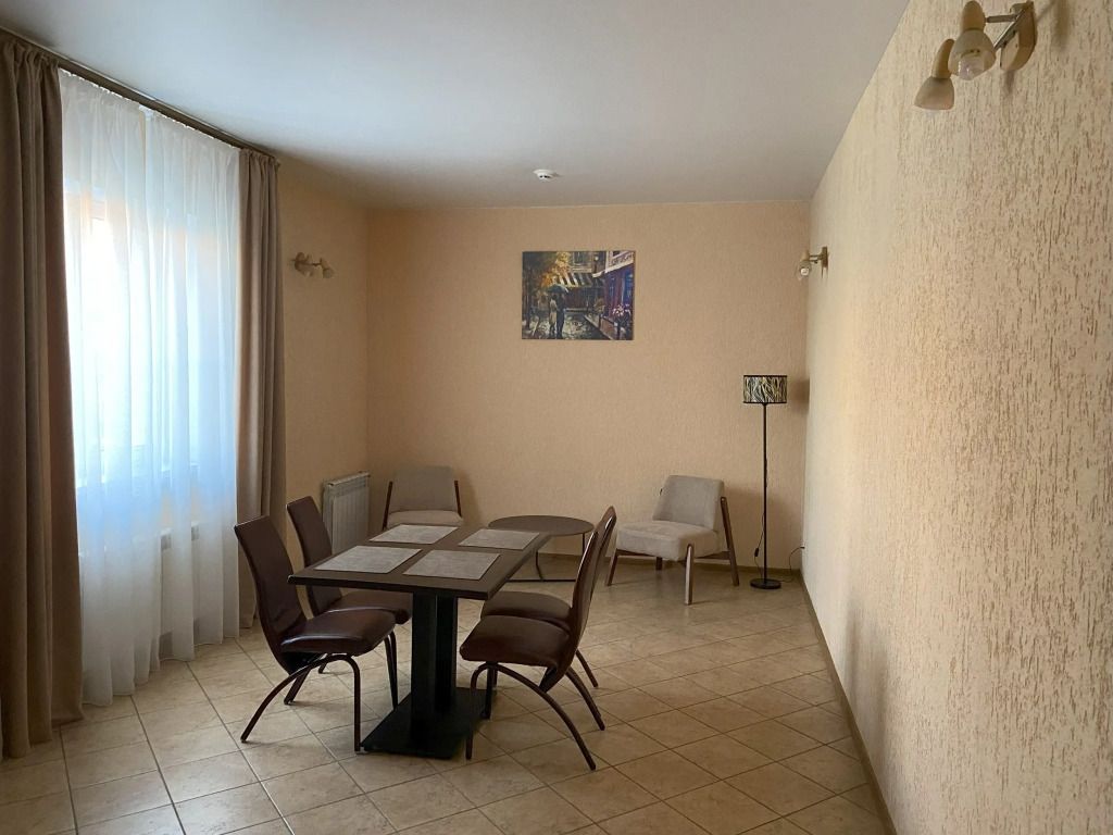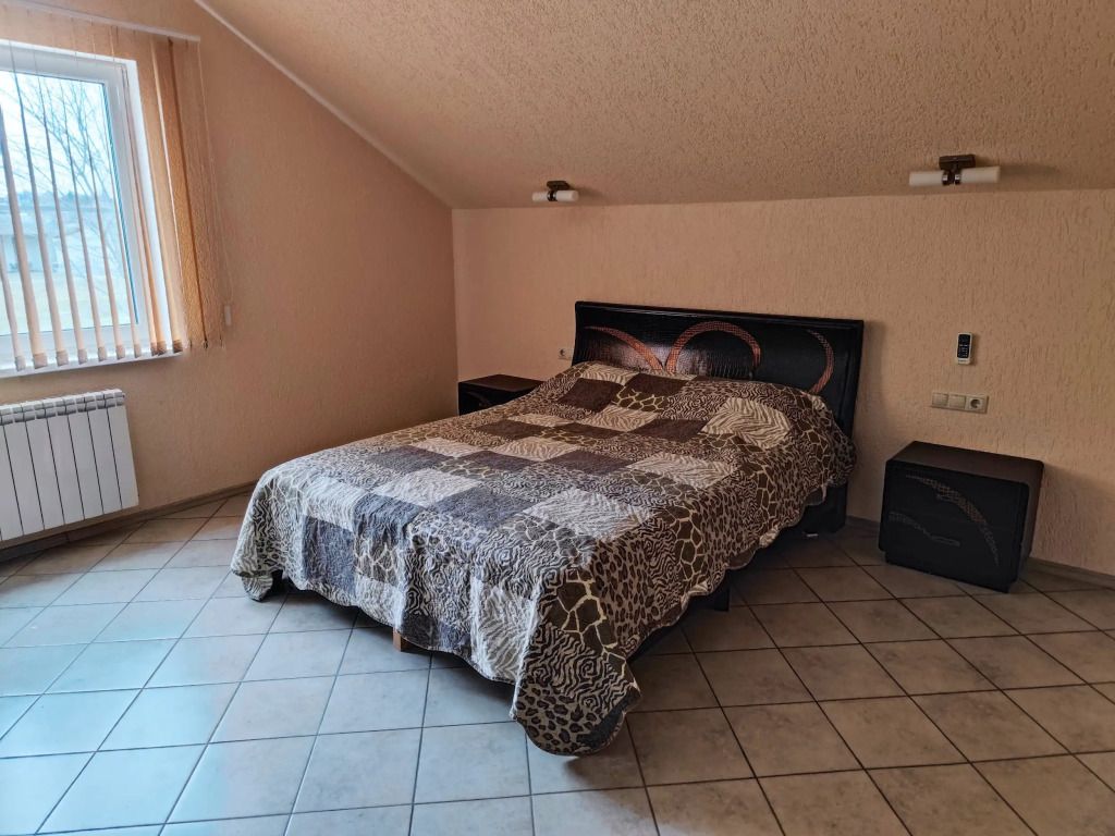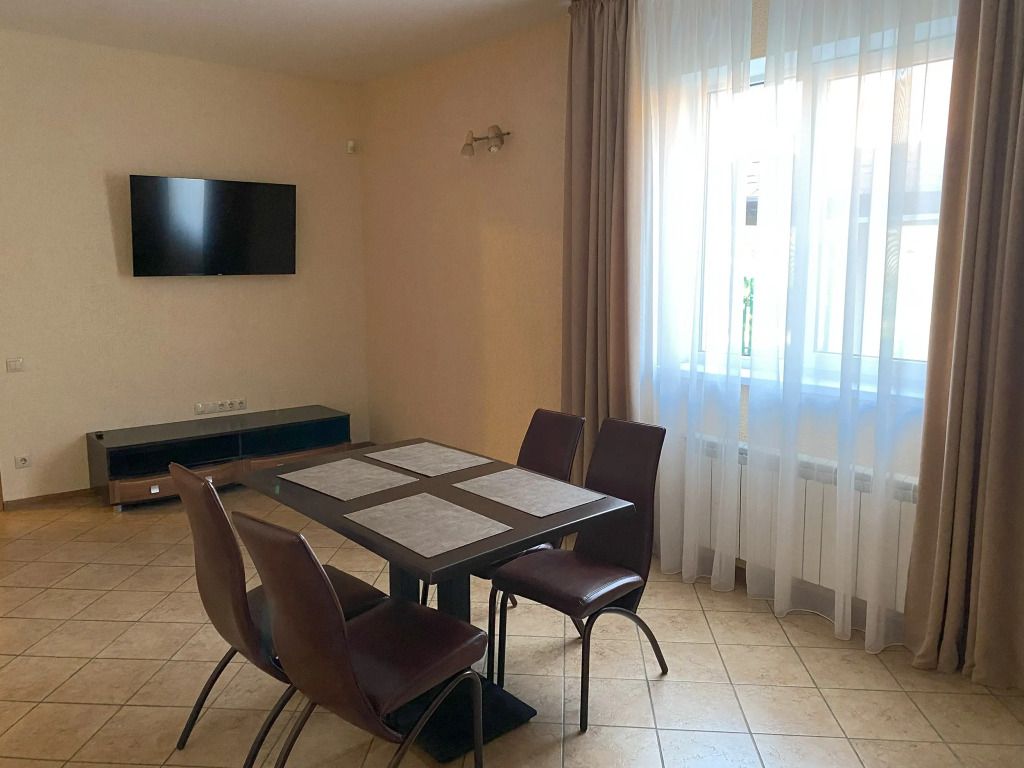 Коттедж располагает кухней, гостиной, двумя санузлами (по одному на этаж), современной душевой кабиной с гидромассажем, а также четырьмя уютными спальнями, в которых установлены кровати с ортопедическими матрасами. Все помещения со свежей евроотделкой, красивой и удобной мебелью, соответствующим оборудованием.