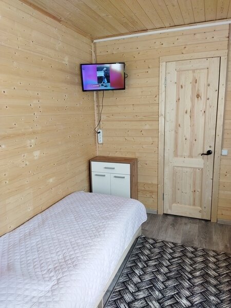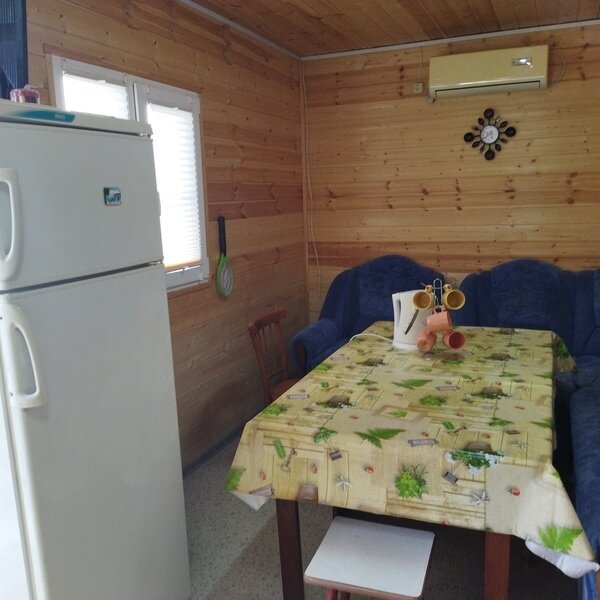 Кухня-гостиная с возможностью размещения 2 человек.(Двуспальный диван).Есть все необходимое, холодильник, микроволновка, посуда, горячая вода. Для отопления в зимнее время установлена печь на дровах!
