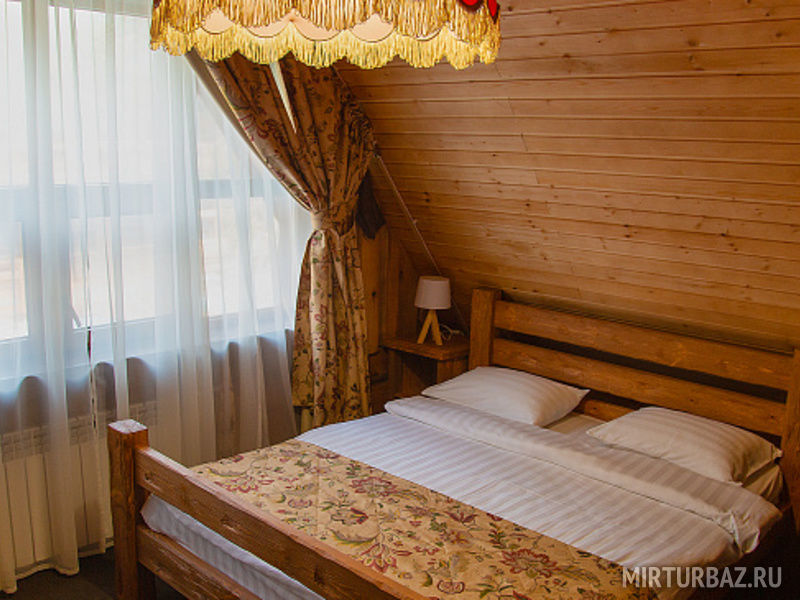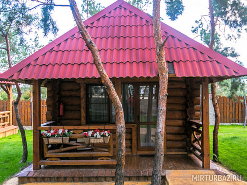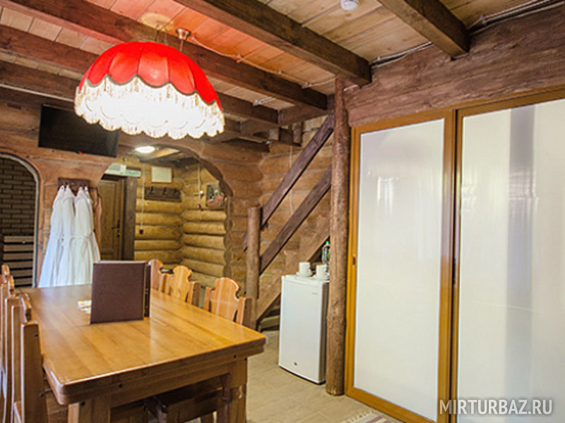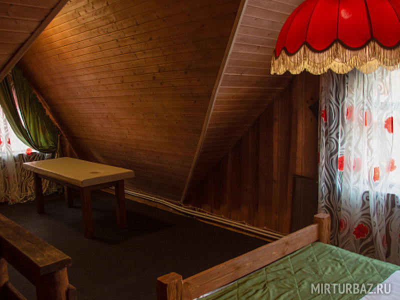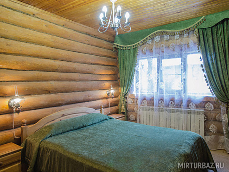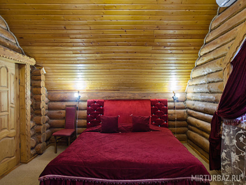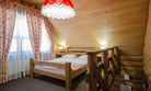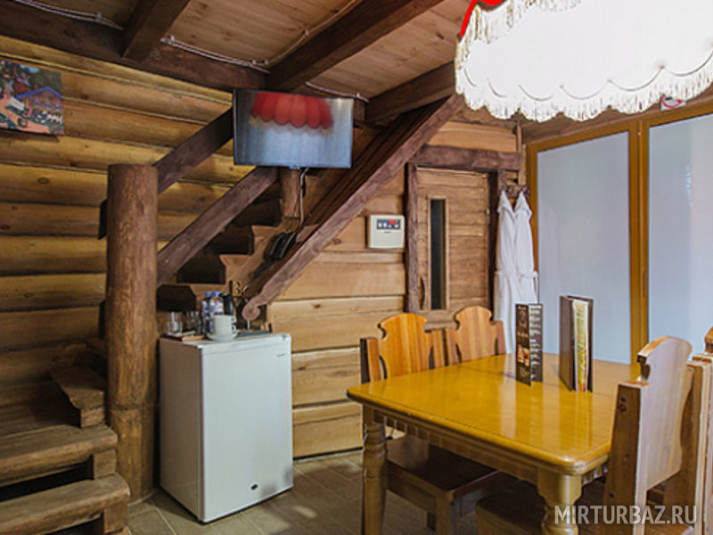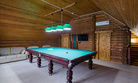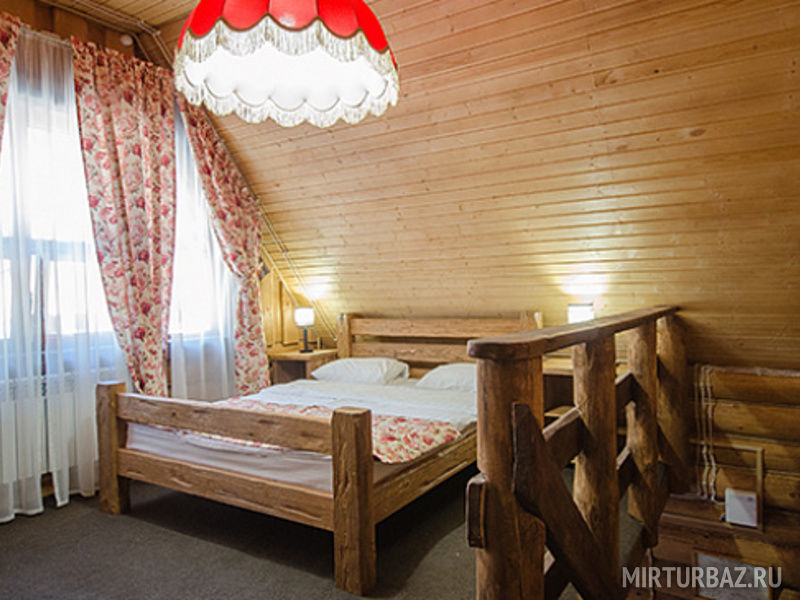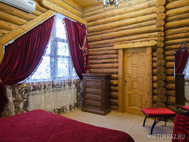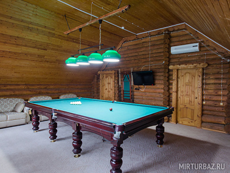 Двухэтажный деревянный коттедж с тремя раздельными спальнями, двумя гостиными (вместимость 6 основных мест и возможно размещение - 4 дополнительных), имеется бильярдный стол, огромная лоджия с мягкой мебелью, большая веранда, прекрасный вид на бассейн.
