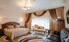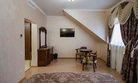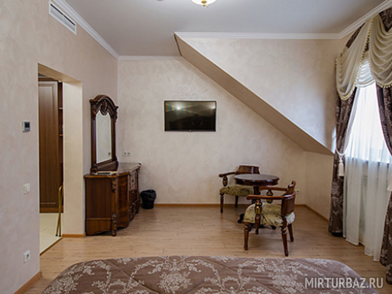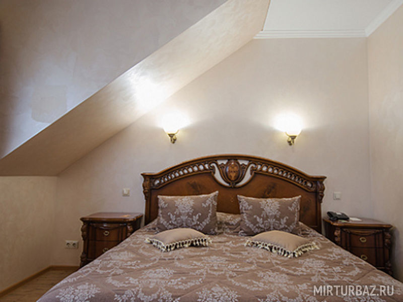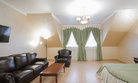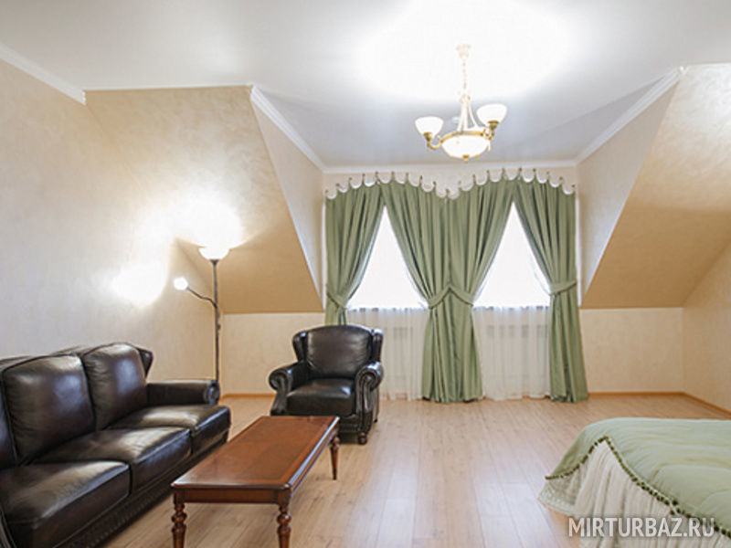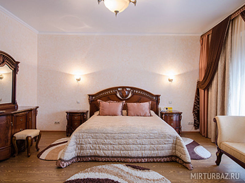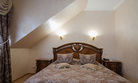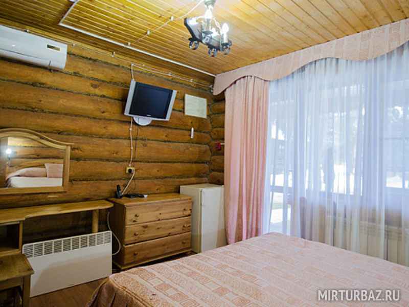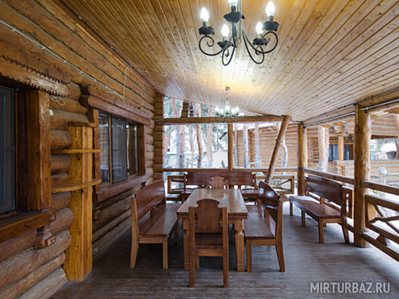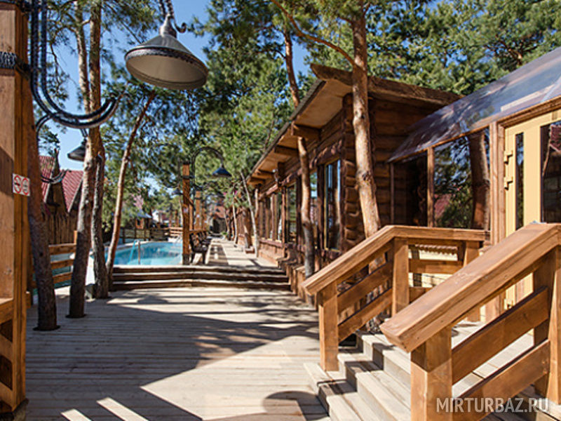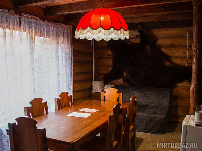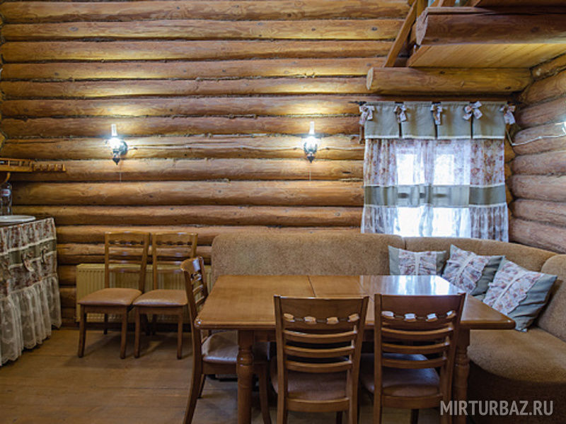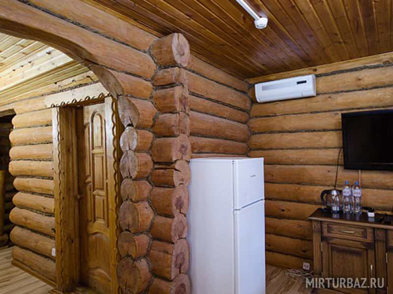 Двухэтажный деревянный коттедж с тремя раздельными спальнями, двумя гостиными (вместимость 6 основных мест и возможно размещение - 4 дополнительных), имеется бильярдный стол, огромная лоджия с мягкой мебелью, большая веранда, прекрасный вид на бассейн.