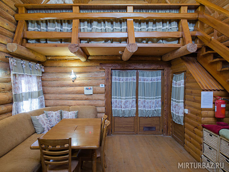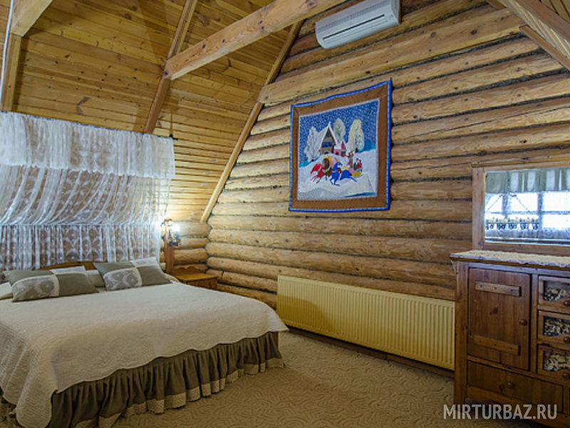 Двухэтажный деревянный коттедж с тремя раздельными спальнями, двумя гостиными (вместимость 6 основных мест и возможно размещение - 4 дополнительных).