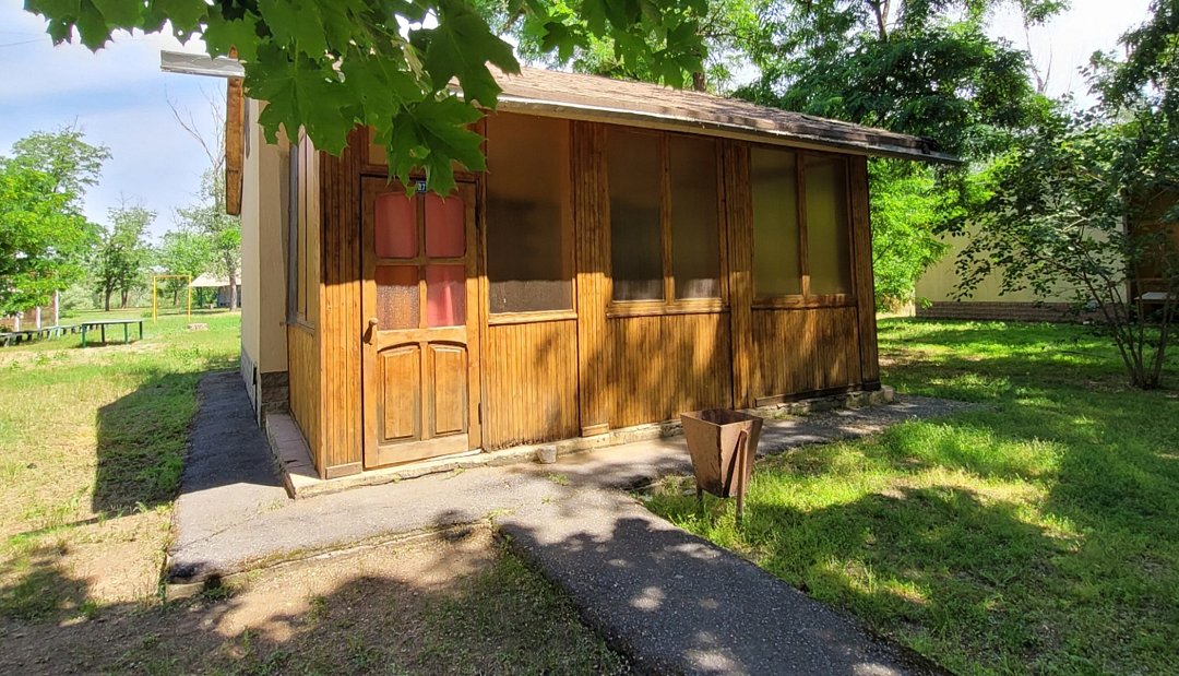 Уютный домик с открытой верандой для отдыха 5-ти гостей. В домике есть кухня, 2 спальни, мебель, телевизор, кондиционер, душ, умывальник, туалет.